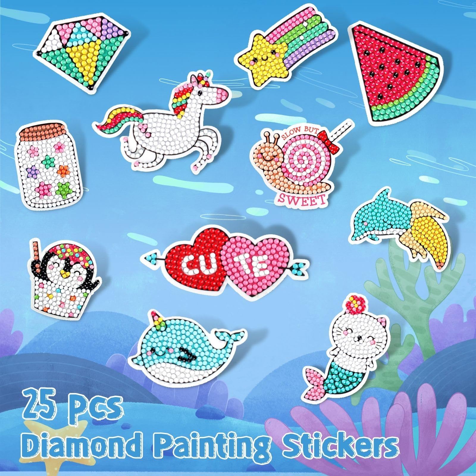 Cymbana 5D Painting Diamond Stickers Kits 25 Pcs Diamonds Dots Arts And Crafts For Kids Ages 6-8 8-12 Contains Unicorn, Mermaid,