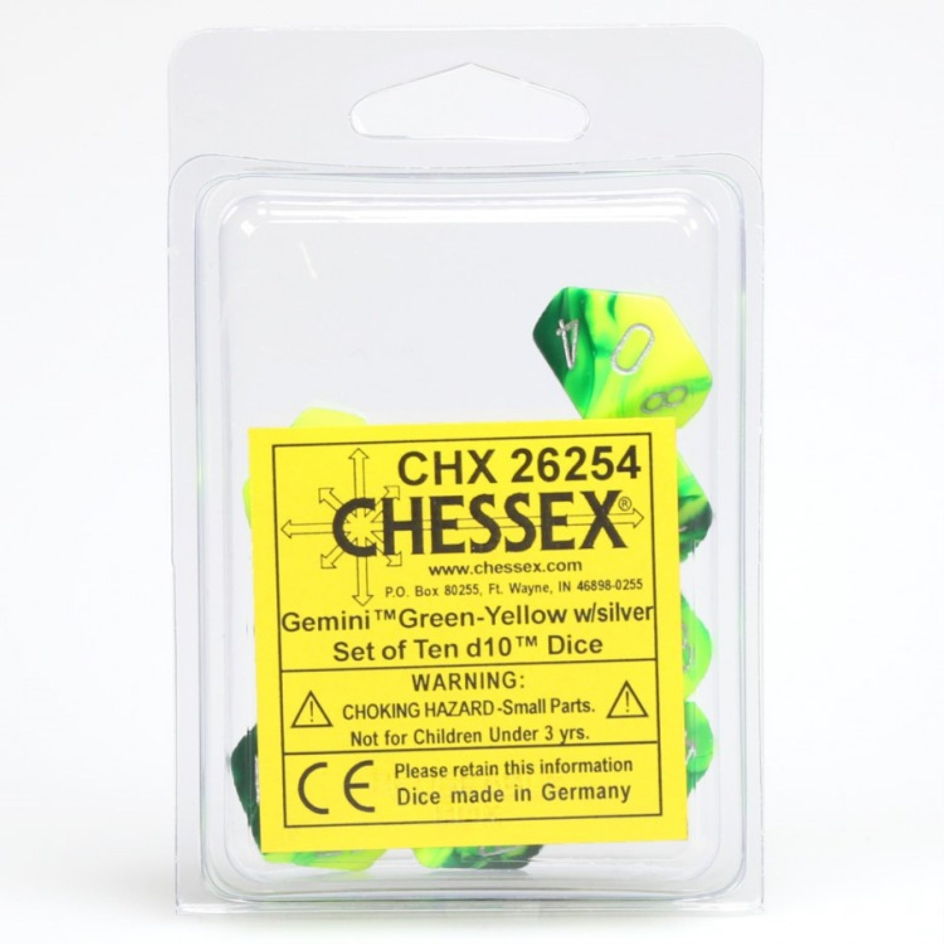d10 ClamshellGemini#6 Green-Yellow w/silver (10) Picture shown is for color reference only.