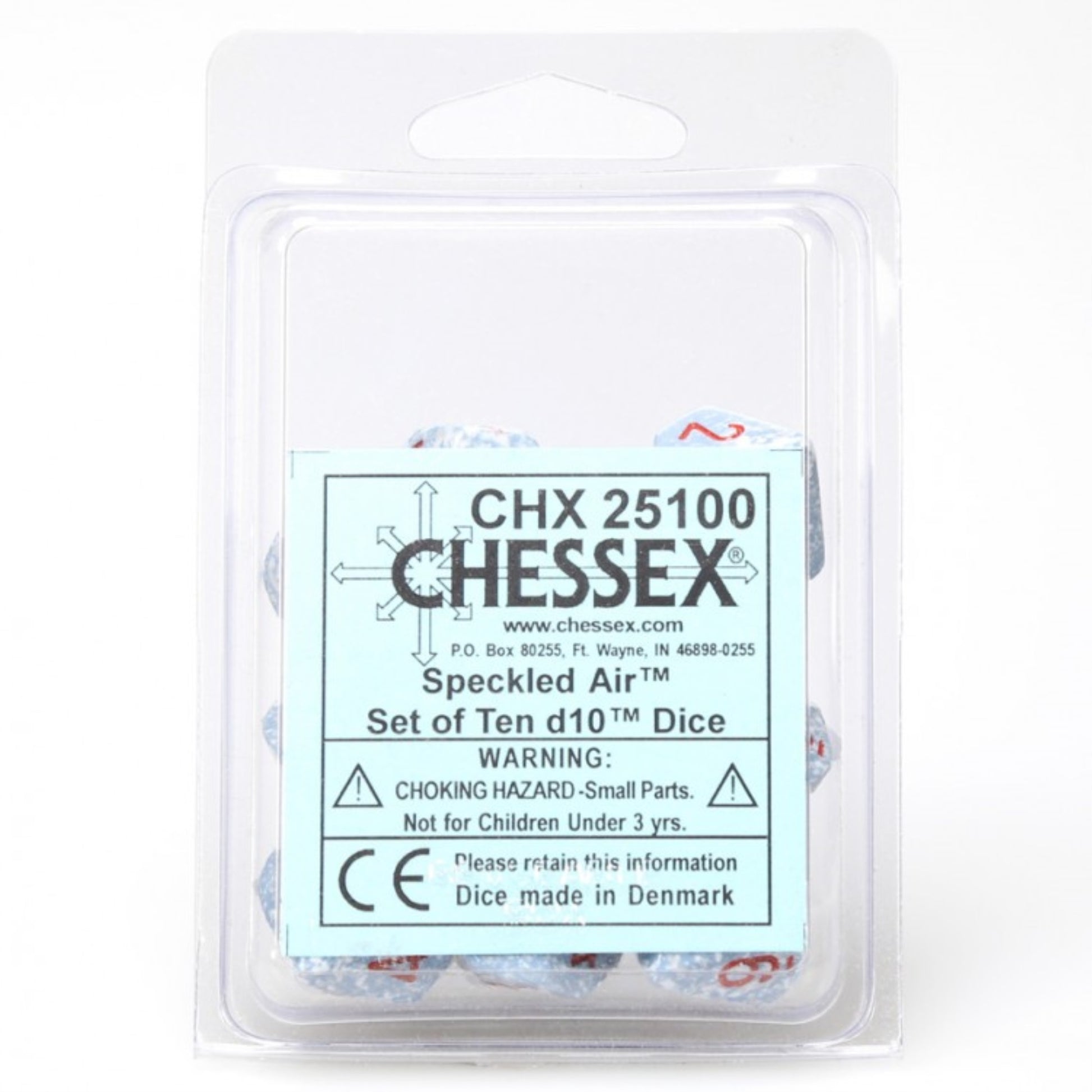 - Q: What are the specifications of the Chessex 25100 Accessories? A: The Chessex 25100 Accessories include 10 multi-colored D10 dice made from durable resin. The dice come in a clear plastic clamshell packaging, with package dimensions of 10.5 cm in length, 2.0 cm in height, and 7.0 cm in width.