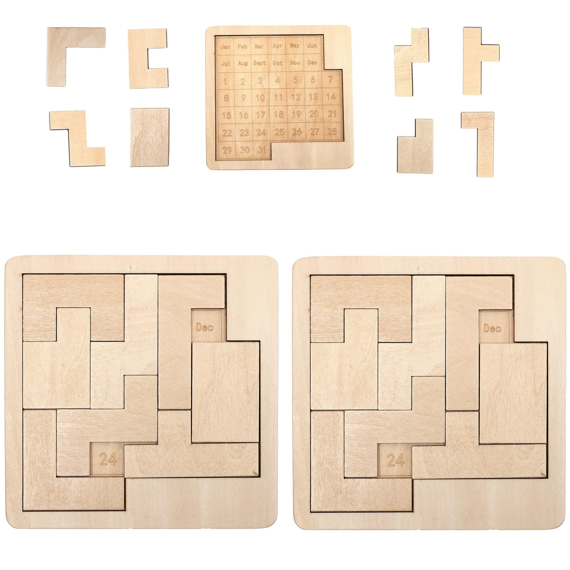 Daily Calendar Puzzle-Wooden Puzzles For Adults-A Puzzle To Challenge 365+ Date,Office Logic Puzzle (2 Pack)