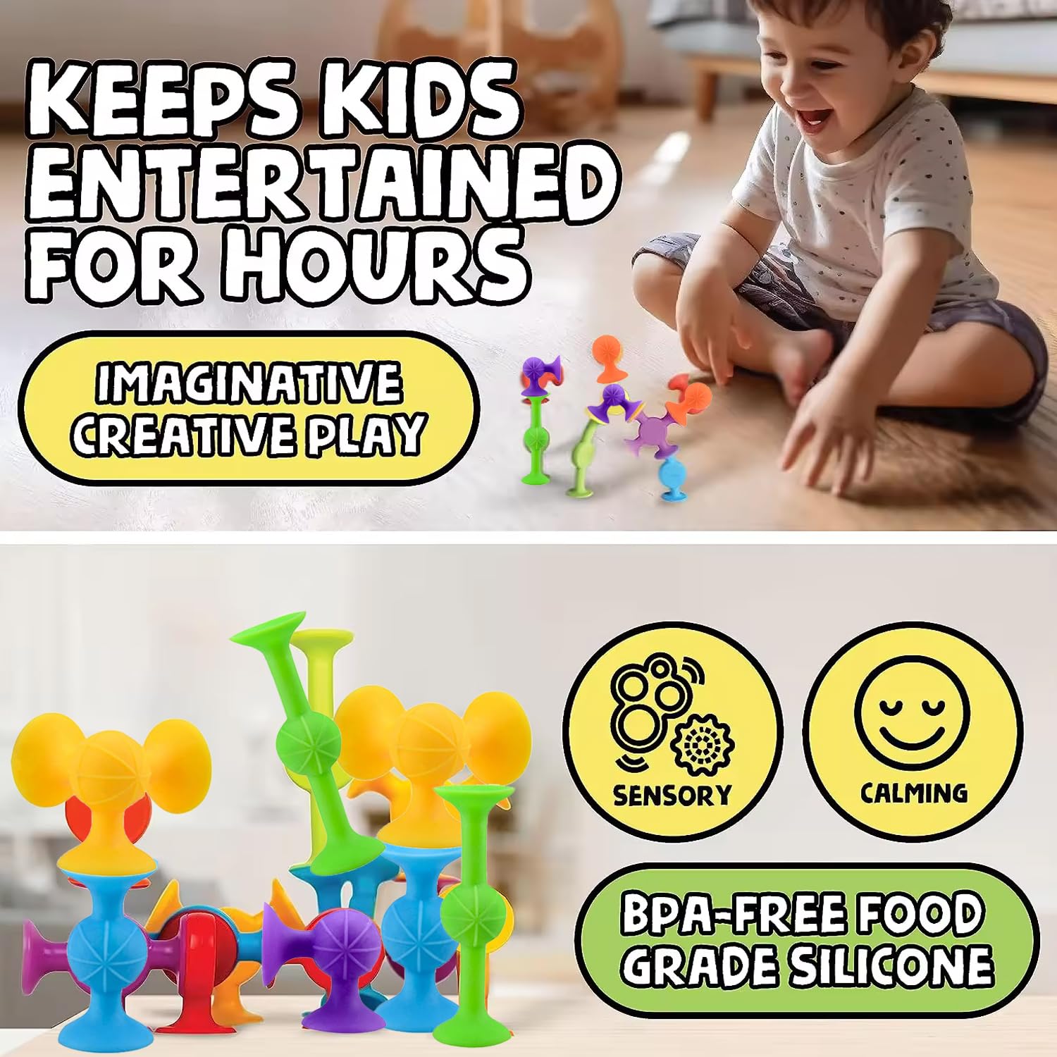 View compareDapam 58 Piece Suction Fun Sticky Toy Set with Storage Bin, BPA Free Silicone, Stimulating Sensory Travel Bathtub Window Toys fo