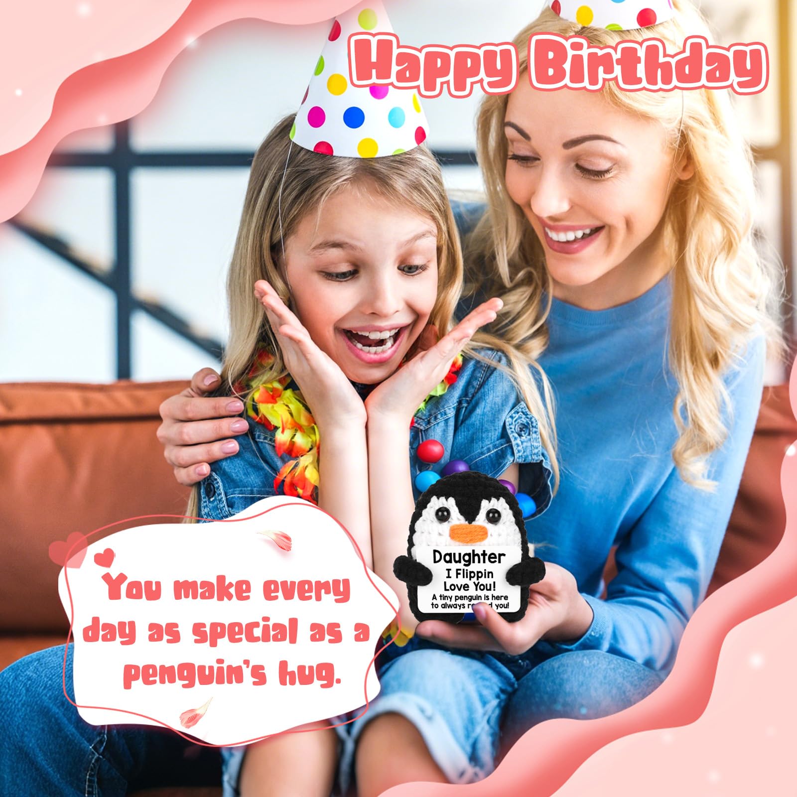 - Q: How does the crochet penguin offer emotional support? A: The crochet penguin symbolizes love and support, reminding your daughter that she is cherished during both joyful and challenging times.