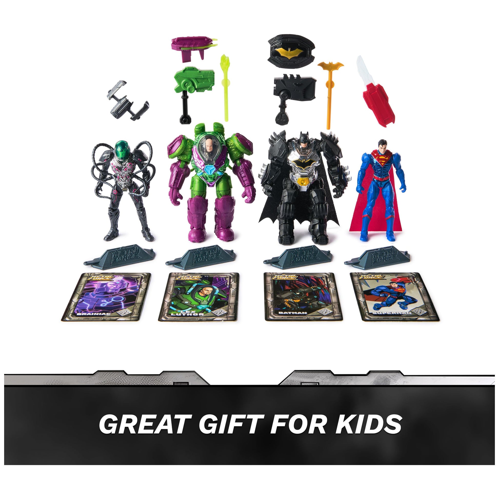 DC Comics Metal Force Team Up Brainiac and Lex Luthor vs Batman and Superman Set 4-Inch Action Figures with limited availability Accessories Includes Character Cards Kids Toys of Boys Ages 4 and Up