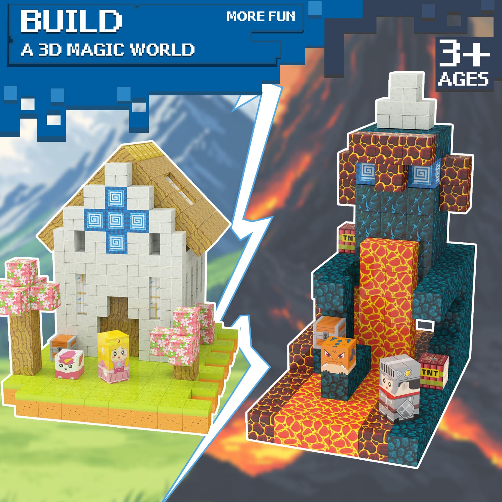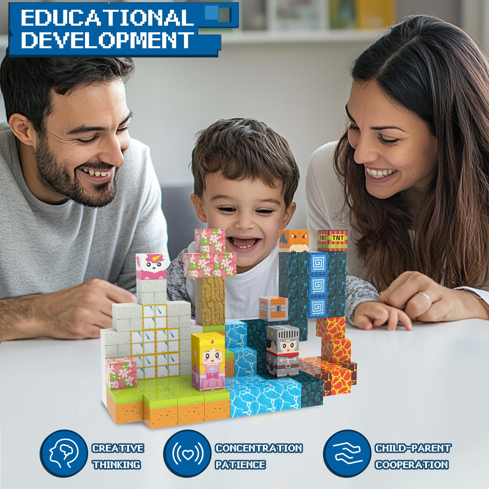 Unlock endless possibilities with these 150 magnetic building blocks! Designed for kids aged 3-13, this STEM Montessori sensory toy set encourages creativity, problem-solving, and fine motor skills development. The vibrant colors and sturdy construction make it perfect for constructing castles, forest, rivers, cliffs, lava, deserts, and more. Let your child's imagination run wild as they build their own unique world. These magnetic blocks are an ideal gift for birthdays or any occasion, providing hours of engaging, educational fun. The blocks are easy for little hands to grasp and manipulate. Spark your child's love for learning with this captivating magnetic block set.