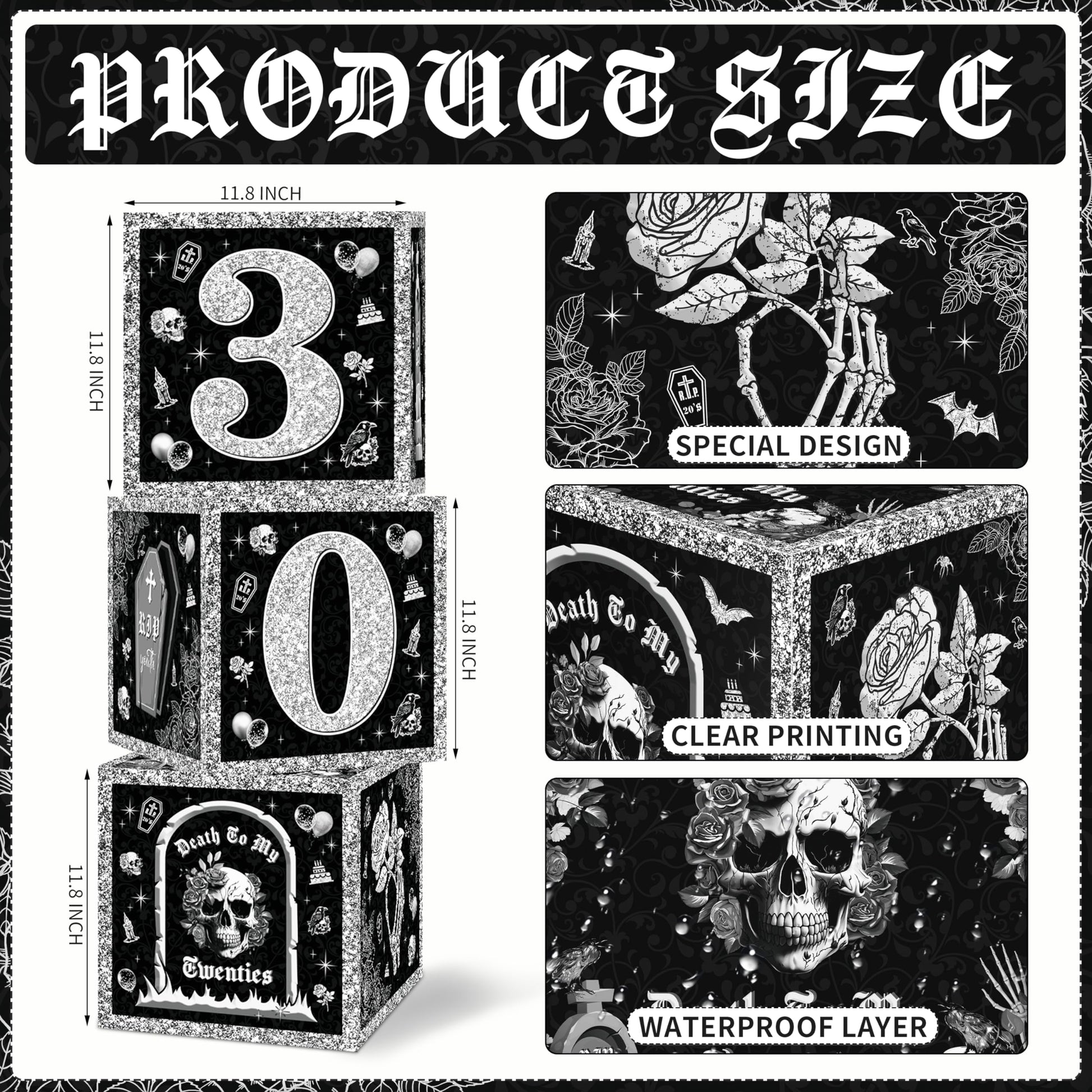 Death To My 20S Decorations 30Th Birthday Decorations Boxes For Her Him, Rip To My 20S Balloon Blocks Black Balloon Boxes With Letters For Funeral For My Youth Dirty 30 Birthday Party Supplies