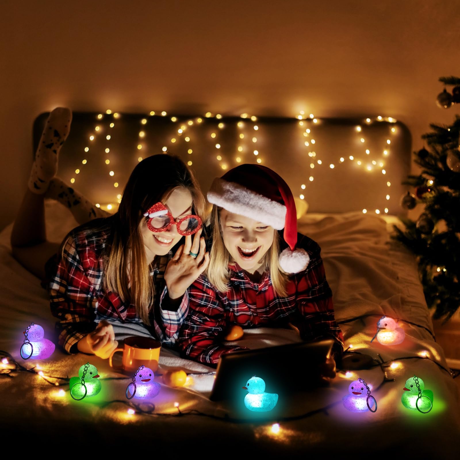 Deekin 100 Pcs LED Light up christmas Rubber Duck Keychain Cute Duck Keychains Bulk Mini Duck Party Favors 3D Duck Chains Small