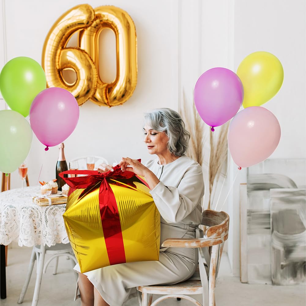 View compareDeermon Large 4 Piece Gold Christmas Square Shape Gift Box Party Balloons With Red Ribbon, Present Cube Gift Box Mylar Party Dec