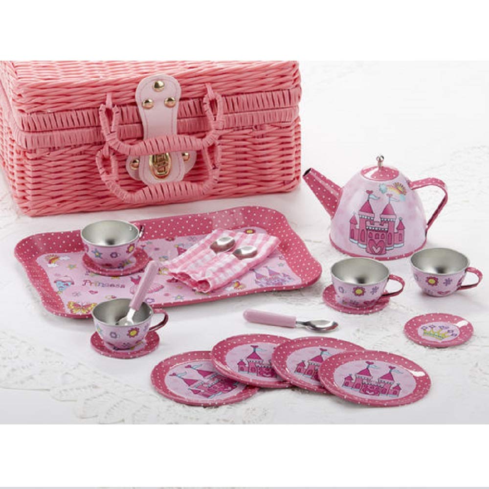 Delton Tin 19 Pcs Tea Set in Basket, Castle