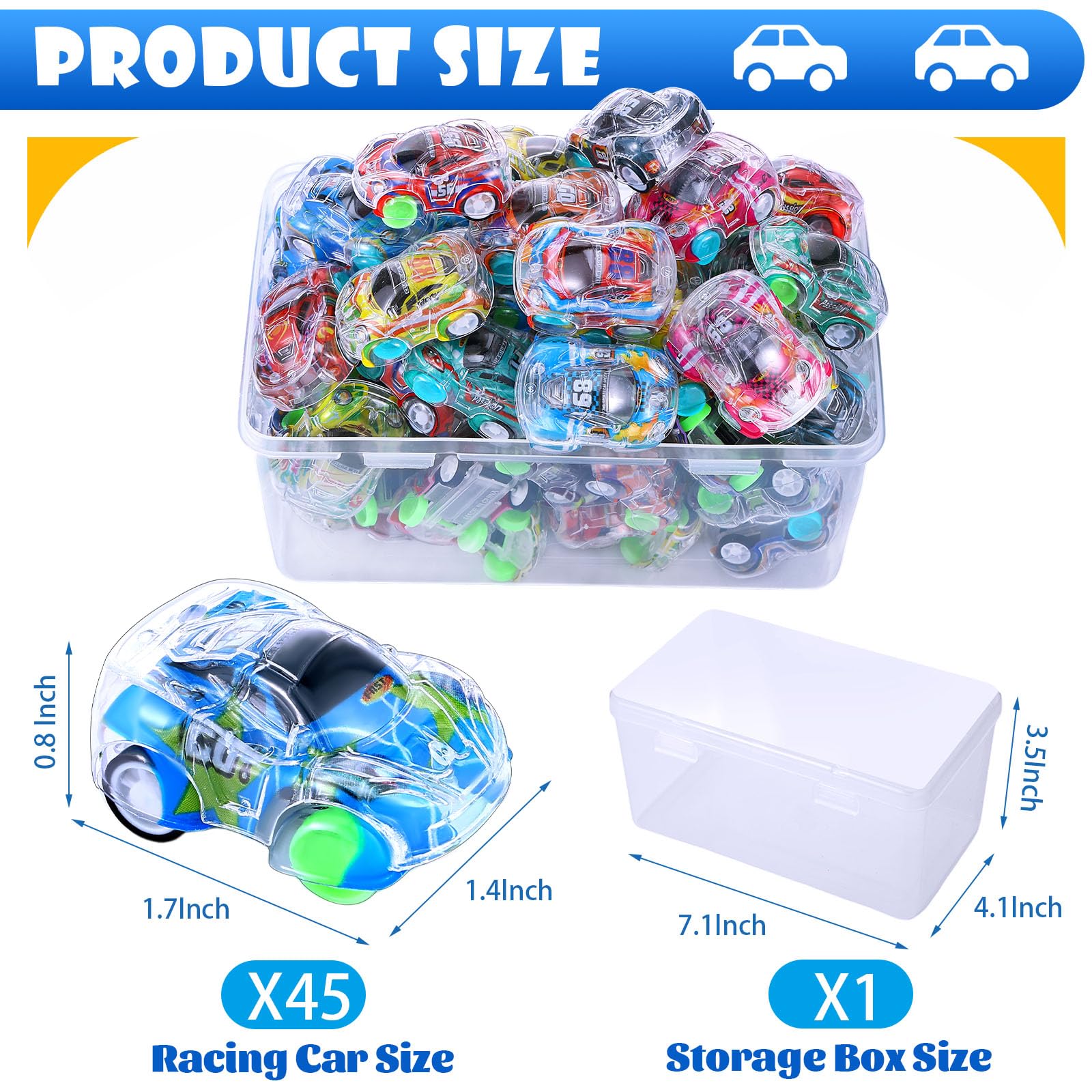 45 Pieces Mini Pull Back Cars For Kids Racing Vehicles Toys Bulk With Storage Box Party Favor Supplies Classroom Prizes Treasure Box Toy Easter Fillers For Boys Girls Toddlers Features: Easy To Operate: These Race Cars Are Designed With No Battery Needed, Cars Move Forward Quickly When Pulled Back Using Friction Power; Easy For Boys And Girls To Use. Perfect Gifts: The Mini Car Toys Are Great For Kids And Will Boost Their Vocabulary Development And Motor Skills; A Variety Of Colors Can Attract A Child'S Attention; And Also A Great Choice For Kids Birthday Gifts, Treasure Box Toy, Classroom Prizes, Easter Fillers, Racing Games, Racing Party Supplies, And More Specifications: Color: Multicolor Material: Plastic Size: 1.7 X1.4X 0.8 Inches Package Includes: 45 X Pull Back Cars Note: The Colors May Exist Slight Difference Due To Different Screens. Manual Measurement, Please Allow Slight Errors On Size.