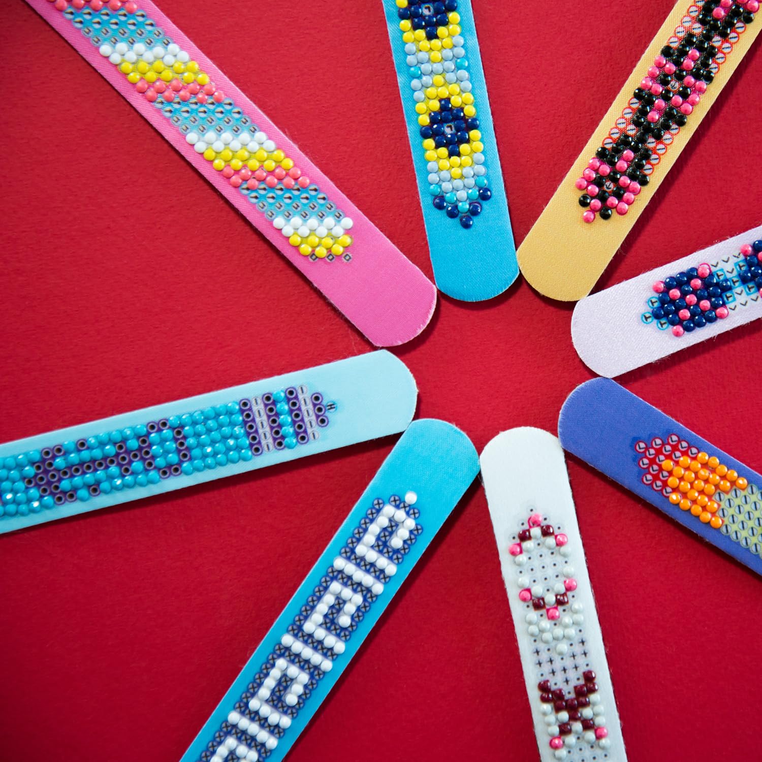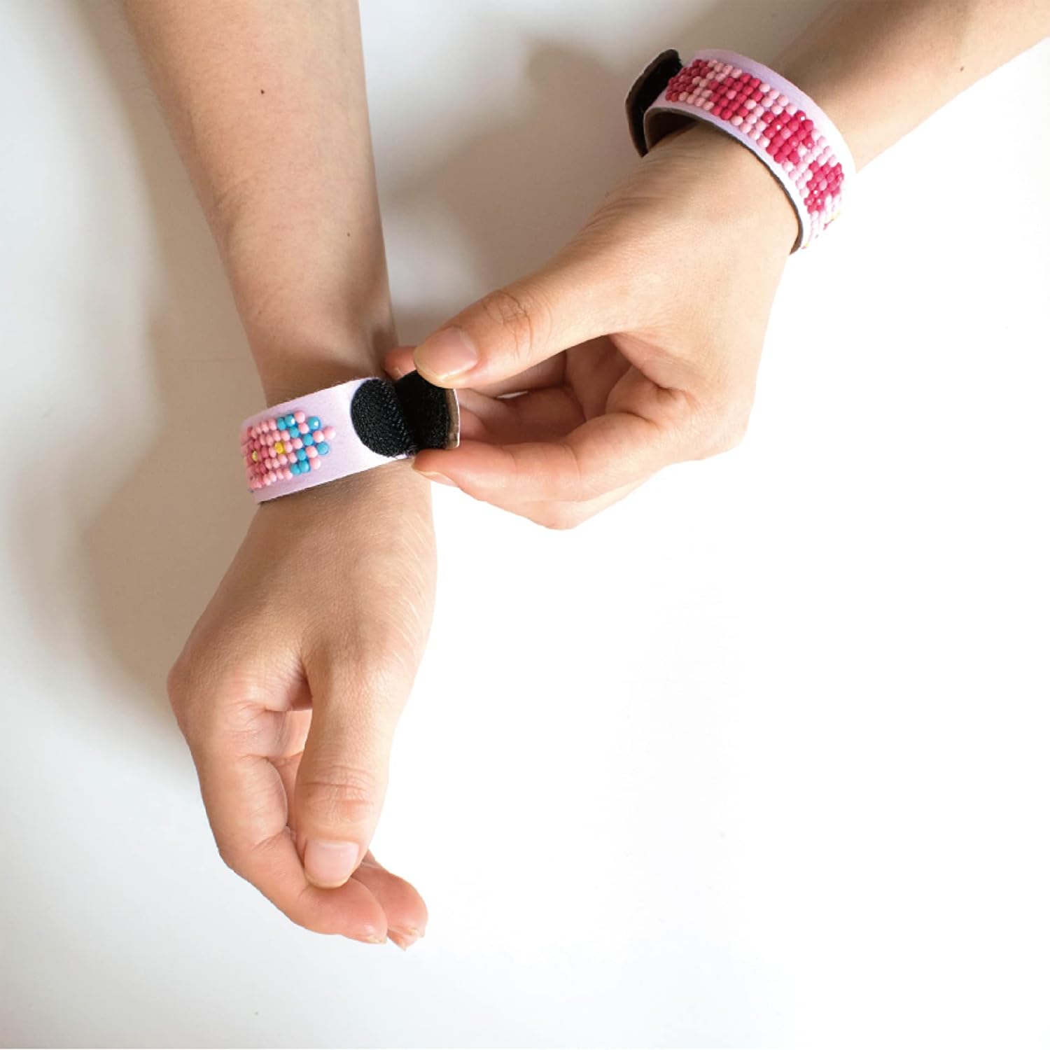Diamond Dotz Facet Art produces a stunning shimmery effect. Diamond like facets and strong bond adhesive ensures the dots stay in place over time. Print is permanent and waterproof; fade and scratch resistant. For ages 8 and up. Dotzies Bracelets Kit Mauves 3pc- Three foam bracelets with two size snap closures each. Images include chevrons, and geometric patterns. Contains: pre-printed foam bracelet, sorting tray, applicator stylus with ergonomic grip, wax, and highlight Dotz pre-sorted by color. Open bracelets each measure approximately 8. 2x . 8.