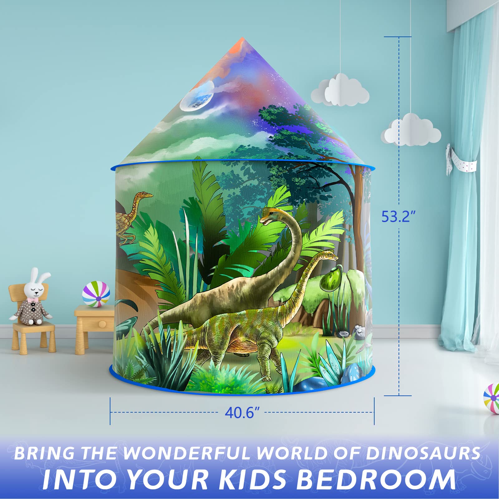 Fun Dinosaur Tent Design: Here’S A Pop Up Play Tent That Goes Up Quick! Featuring Vibrant Panels With Dinosaur To Encourage Little Adventurer To Use Their Imaginations, This Kids Play Tent!