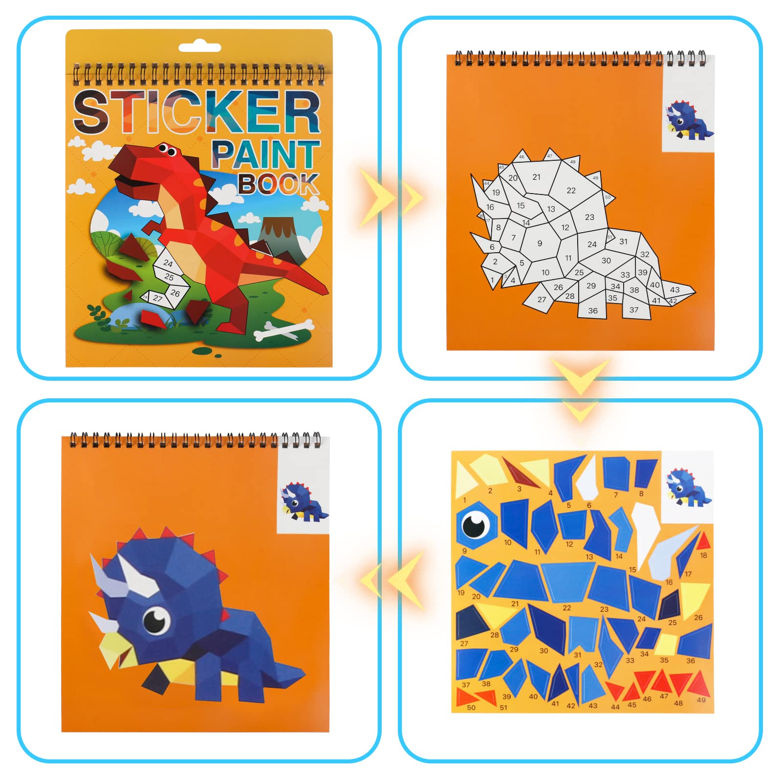 Dinosaur Sticker Book Crafts For Kids Ages 4-8,8-10 Sticker Paint Number Stickers For Kids Birthday Party Favor Christmas Gift Car Road Plane Travel Toy Activity Books