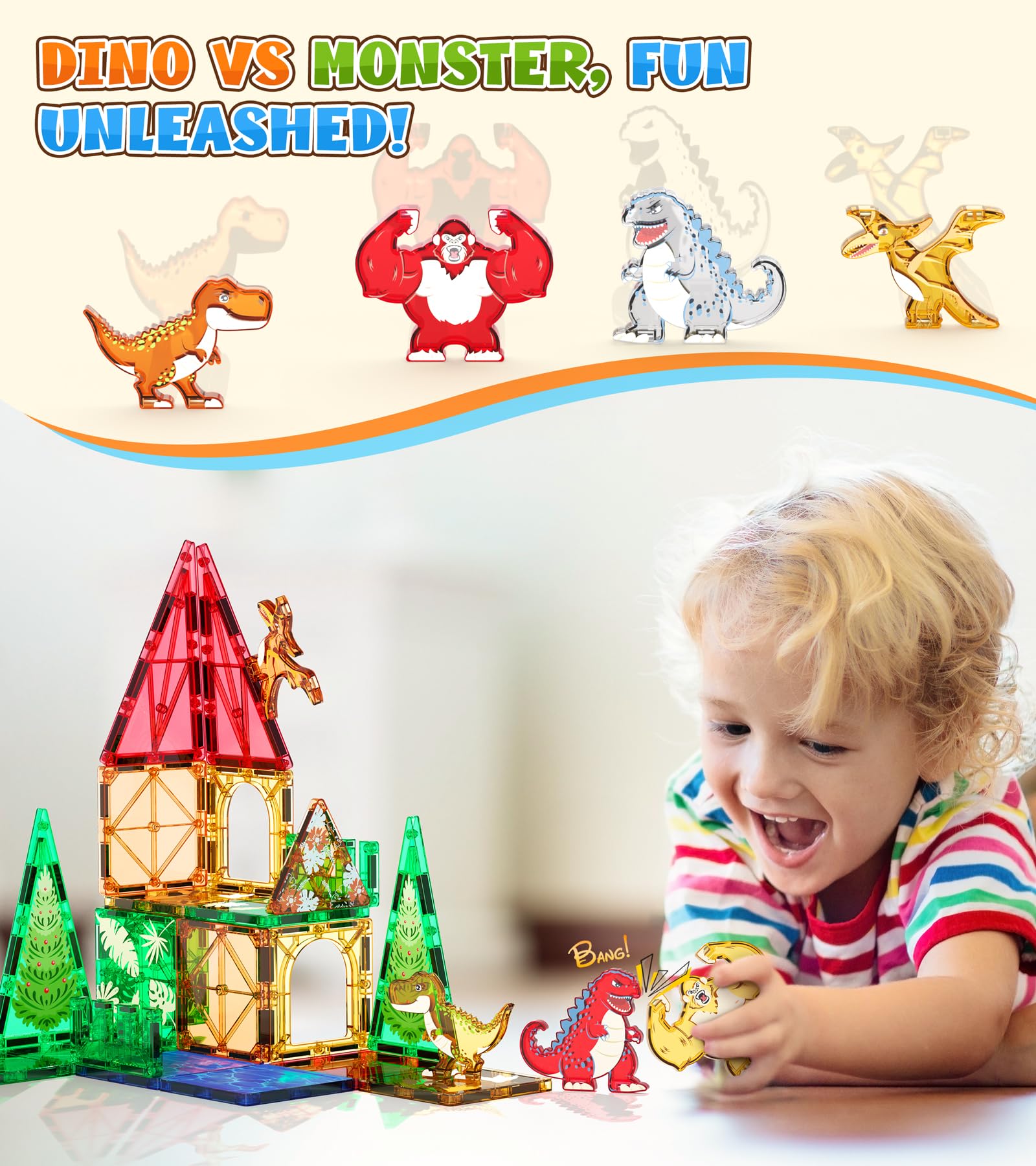 Dinosaurs Toys Magnetic Tiles For Kids 3-5, Dino,King Kong And Godzilla Animals World Construction Tile For Toddlers Ages 5-7, Magnet Building Blocks For Boys Girls Ages 3+ 4-8 8-12 Year Old
