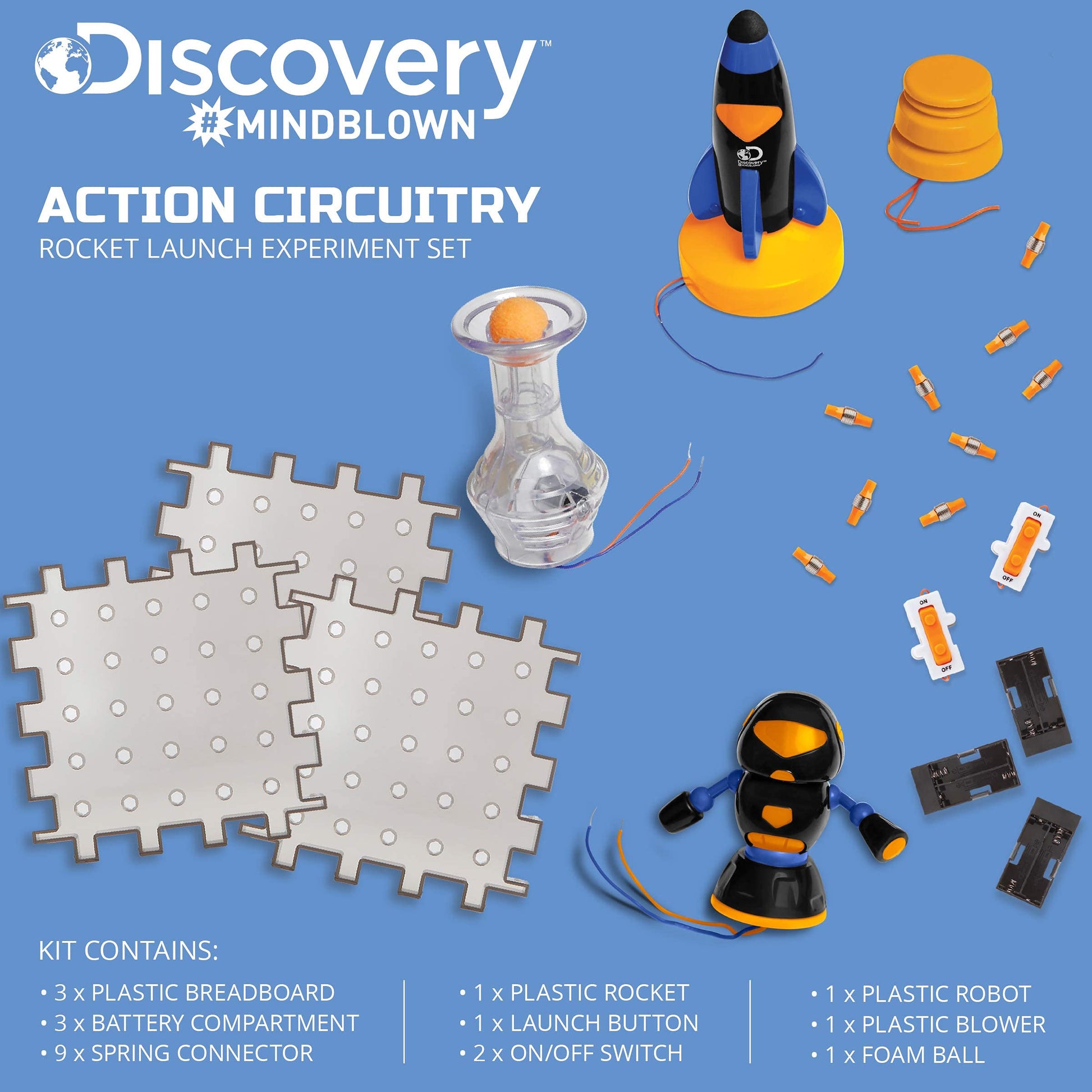 ? BUILD WORKING GIZMOS AND GADGETS with the Action Circuitry Electronic Experiment Mini Set from Discovery #MINDBLOWN! All you need is this kit and 2 AA batteries (not included) to experience pure electric fun. | ? 4 EXPERIMENTS IN 1: Combine 4 of the most exciting STEM kits into one awesome set! Including favorites such as the Rocket launch, Spinning Robot, and Floating Ball. | ? EDUCATIONAL STEM TOY LEARN ABOUT ELECTRICITY AND CIRCUITRY: Learn the principles behind electricity, circuitry and engineering as you run the included experiments and even design your own. | ? POWERED BY BATTERIES: The mini experiment requires 2 AA batteries (not included) to power the module. You must connect batteries to run the experiments. | ? FOR AGES 8+: The Discovery #MINDBLOWN Electronic Circuitry Experiment Building Set is designed for children ages 8 and older. Contains small parts. Not suitable for children under 3 years. Please read all warnings and safety information in the enclosed instruction manual to ensure safe operation.