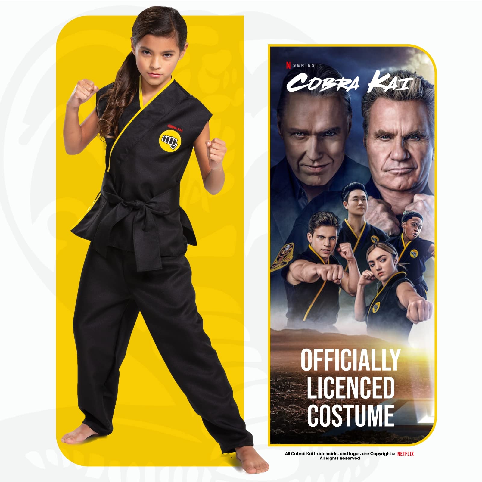 - Q: Does this costume include accessories? A: Yes, the Cobra Kai costume includes a full karate uniform top and bottom, along with a black belt to secure the gi at the waist.