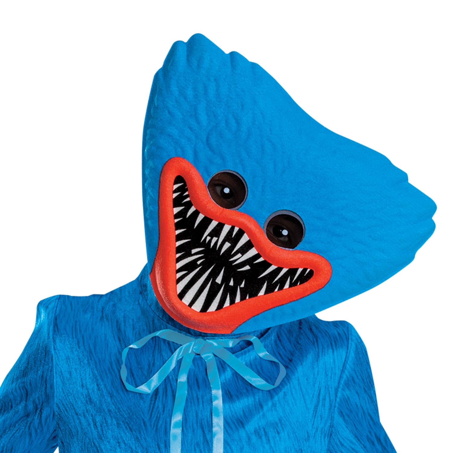 Prepare to step into the whimsically eerie world of Poppy Playtime with this officially licensed Huggy Wuggy Classic costume! The costume features a long-sleeved jumpsuit with an all-over art print replicating Huggy’s blue fur, with a blue satin bow at the neck. Attached yellow mittens can stick together with hook-and-loop pads to give your child a hug as strong as Huggy Wuggy’s! The included Huggy Wuggy half mask completes the look of the sinister character!
