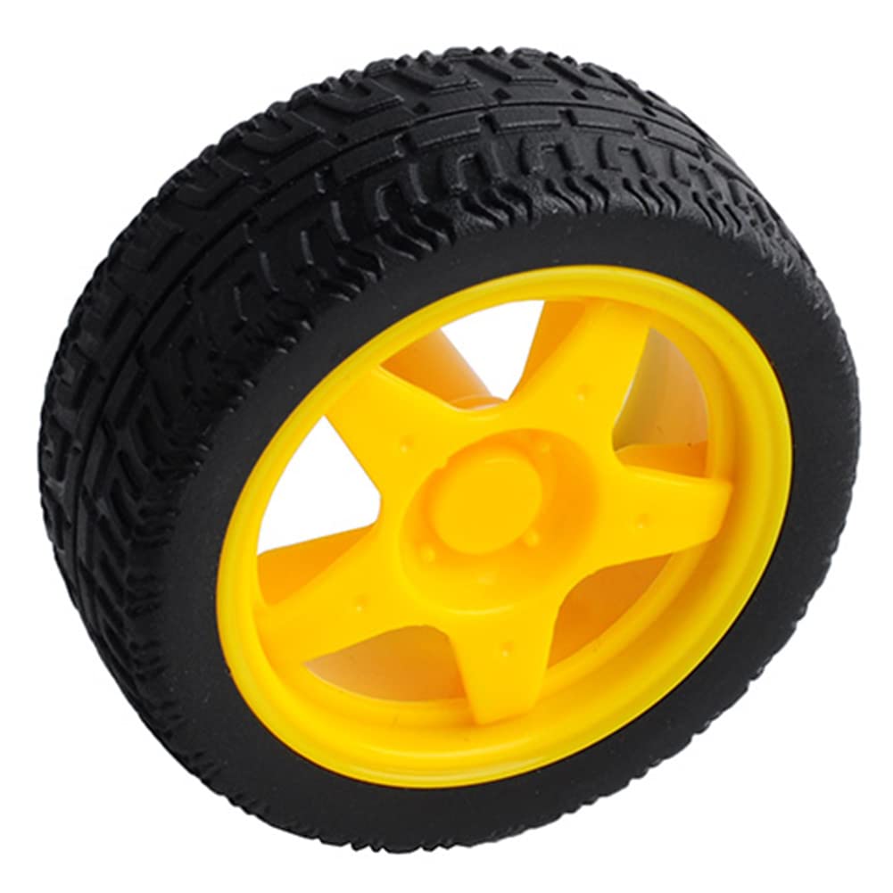 DC Gearbox Motor TT Motor Dual Shaft 200RPM Gear Ratio 1:48 with 2Pin Male Connector Wire Description: This is a TT DC Gearbox Motor with a gear ratio of 1:48, and it comes with 2 Pin 200mm length wires with breadboard-friendly 2.54mm(0.1 ) male connectors. Perfect for plugging into a breadboard or terminal blocks Rated Voltage: 3~6V Continuous No-Load Current: 150mA +/- 10% Min. Operating Speed (3V): 90+/- 10% RPM Min. Operating Speed (6V): 200+/- 10% RPM Torque: 0.15Nm ~0.60Nm Stall Torque (6V): 0.8kg.cm Gear Ratio: 1:48 Body Dimensions: 70 x 22 x 18mm Wires Length: 200mm 28 AWG 65mm Plastic Tire Wheel for Smart Car Robot Model Wheel Feature: Wheel diameter: 65mm Wheel thickness: 28mm 2motors+2wheels can be used in 2WD smart car chasis. 4motors+4wheels can be used in 4WD smart car chasis. Package Includes: 4 X DC Gearbox Motor TT Motor 4 X Wheel