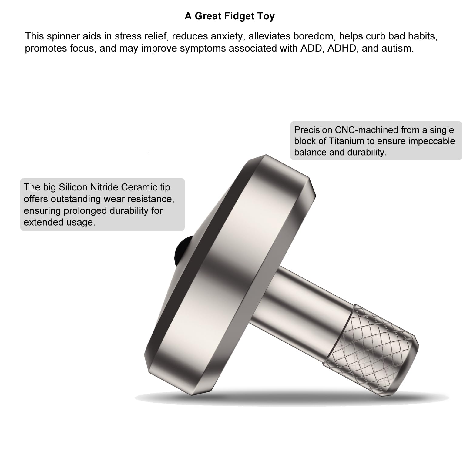- Q: How is the DjuiinoStar spinning top made? A: This spinning top is meticulously CNC machined from solid titanium, ensuring impeccable balance and durability. It also features a Silicon Nitride Ceramic tip that enhances wear resistance, making it suitable for prolonged use.