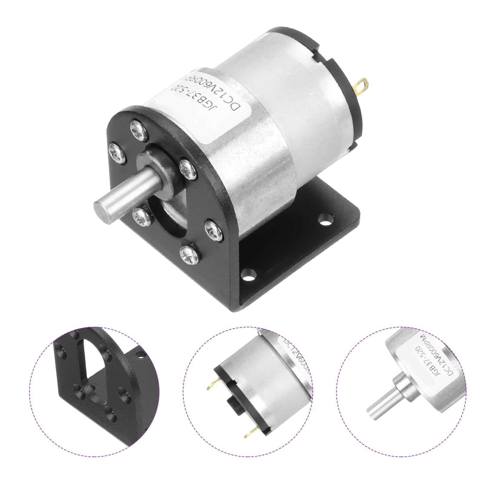APPLICATION:DC Mini Metal Gear Motor, used for electronic game machine,car toys, electronic toys, robot, electronic, etc.This motor suitable for most of high torque applications With precision winding technology, the geared motor power instant increased.ADVANTAGES:1.All Metal Gears, high-temperature resistance, high abrasion resistance, strong load capacity, sturdy and durable.2.This slow rotating motor support speed regulation, and clockwise and counterclockwise rotation.3.You can also easily mount a wheel on the motor's output shaft. You also can adjust the speed, but the small electric motor speed can only be reduced, can not be raised.PACKAGE CONTENT:Voltage: DC12V;Material: Metal;No load speed: 600rpm;Power: 10W;Shaft diameter: 6mm/0.24 inch;Total diameter: 37mm/1.46 inch;In the package of:1pcs x high torque dc motor with 1pcs mounting bracket and 10pcs screws.NOTE: Pay attention to the use of voltage and current range of geared electric motor.