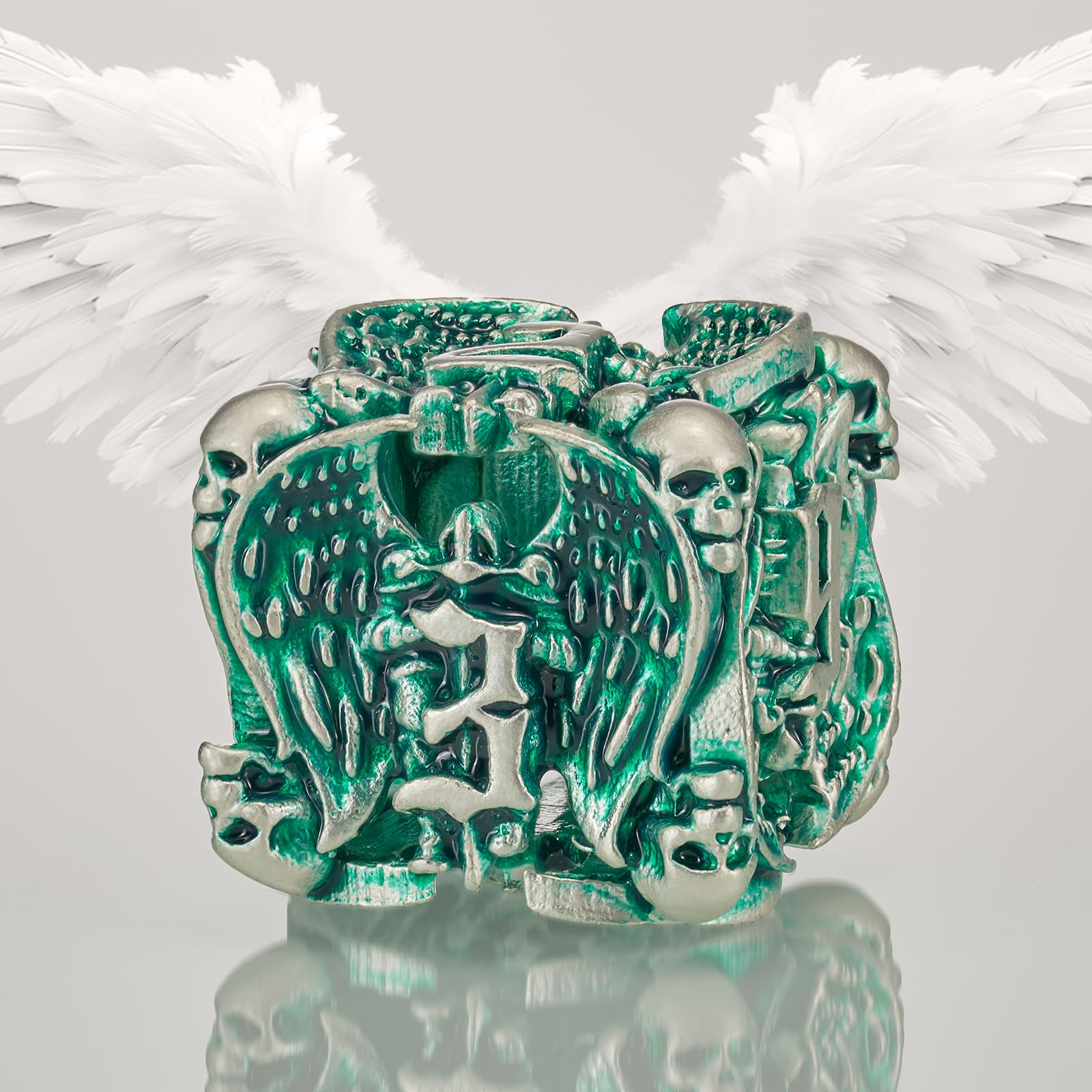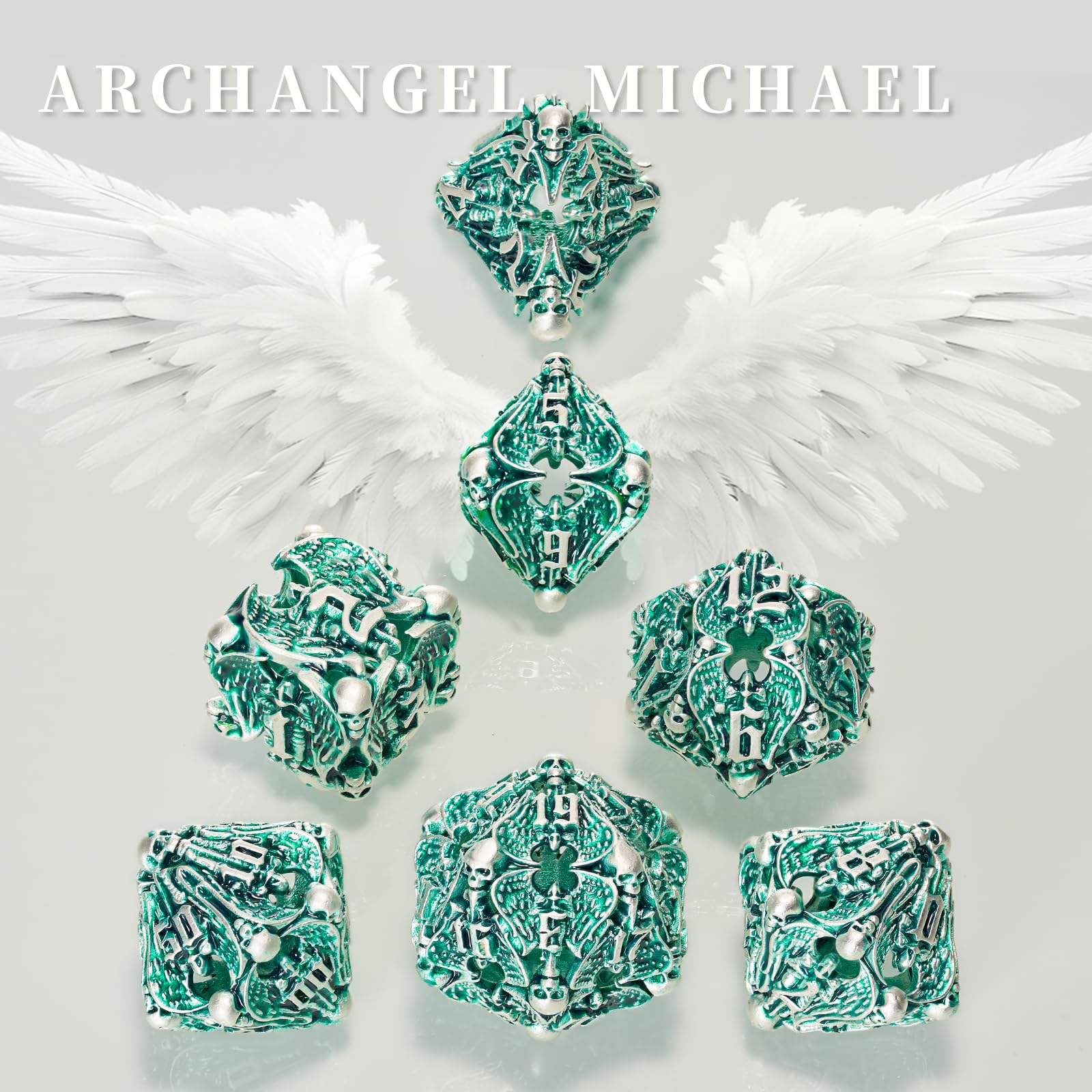 Matt Green White Metal Dice 7 PCS Skull Hollow Game Dice for Dungeons and Dragon