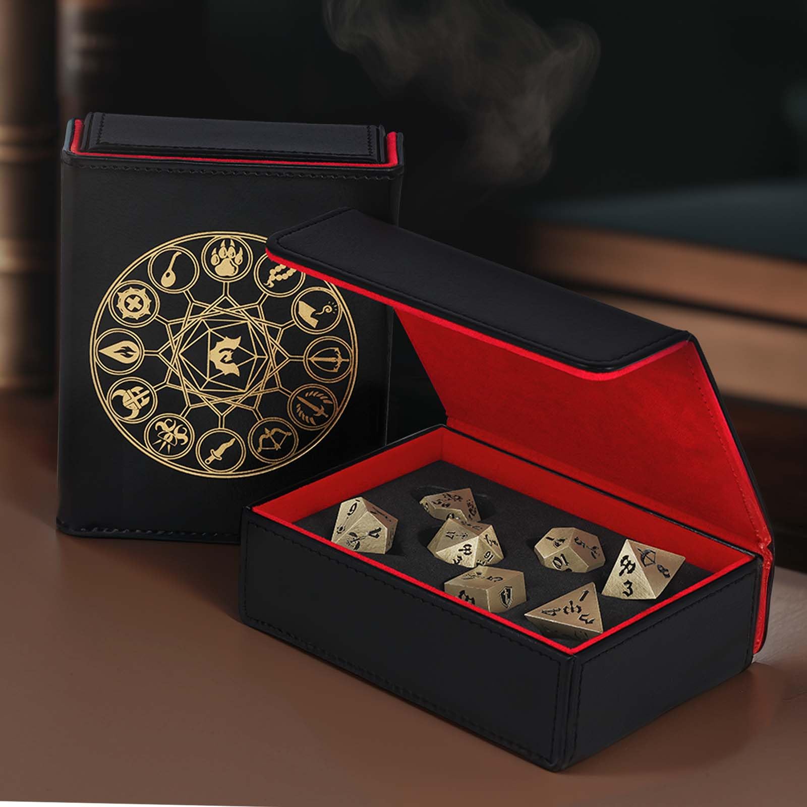 - Q: What is included in the DND dice set package? A: The package includes a total of 7 metal dice, specifically designed for Dungeons and Dragons gameplay, and a leather portable dice box. The box not only protects your dice but also serves as a dice rolling tray, enhancing your gaming setup.