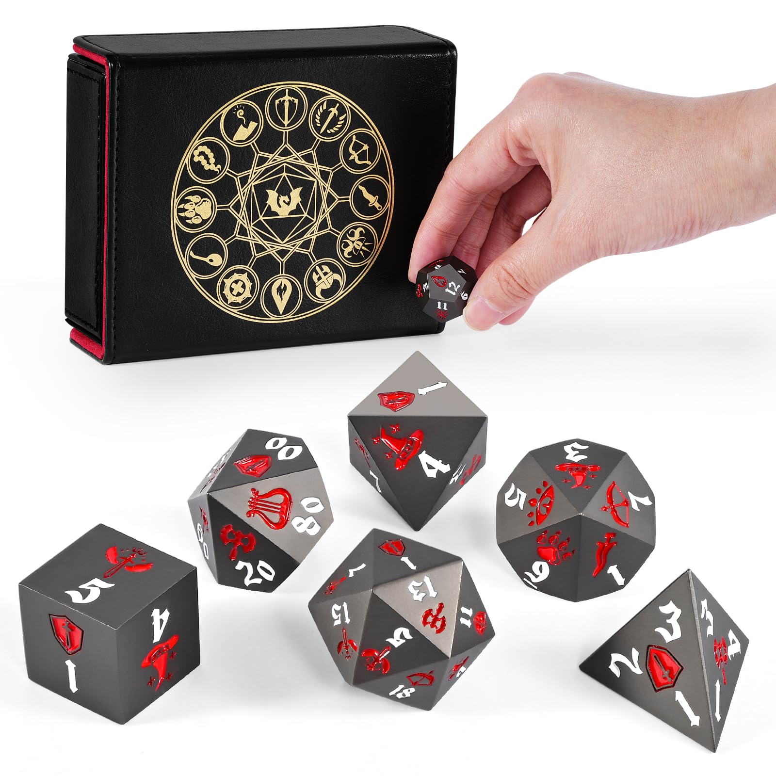 View compareDND Dice Set, 7Pcs Metal Dice with Dice Box for Dungeons and Dragons, Polyhedral D&D Dice Set Role Playing Games, Board Games (D