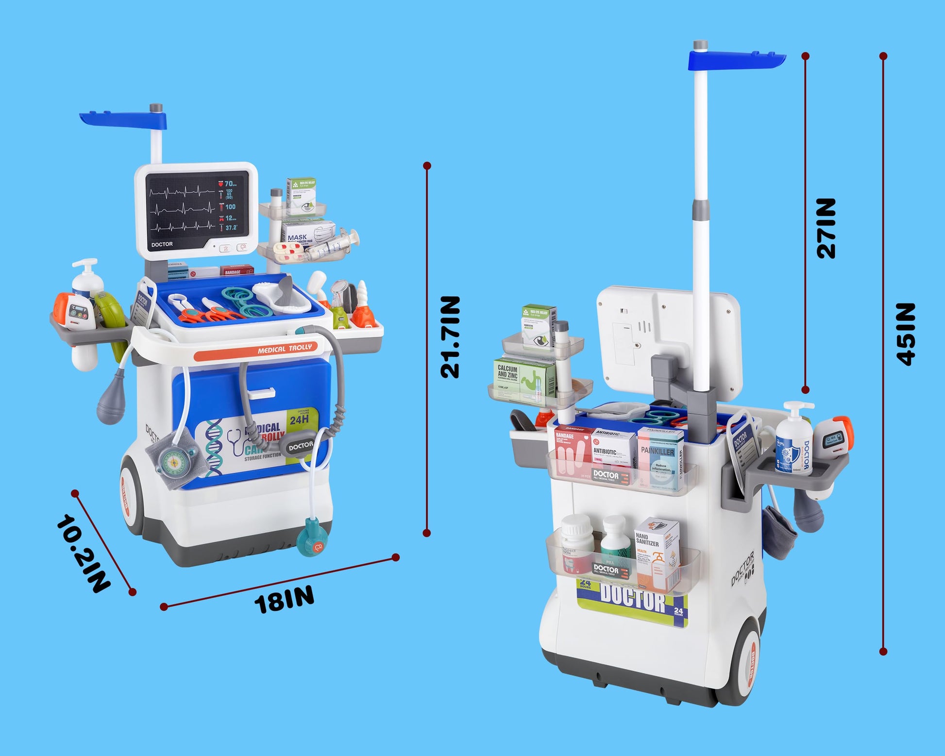 Doctor Kit for Toddlers - Deluxe Pretend Play Medical Cart Toy Set with Stethoscope ,Thermometer,Doctor Costume & Carry Bag - Ed