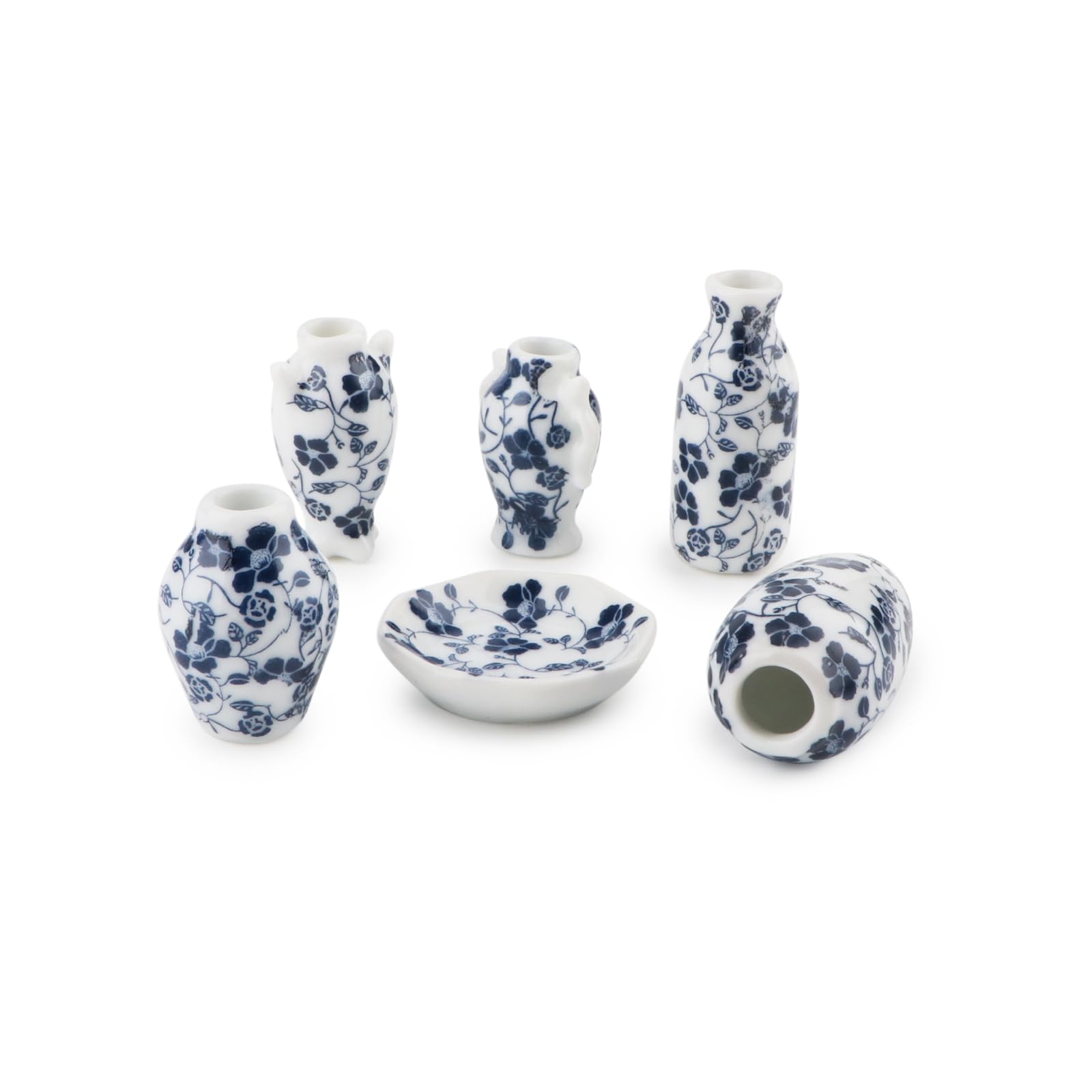 View compareDollhouse Vase 7 Pcs Set Miniature 1/12 Scale Blue Flower White Porcelain Vases Set Dollhouse Decoration Accessories