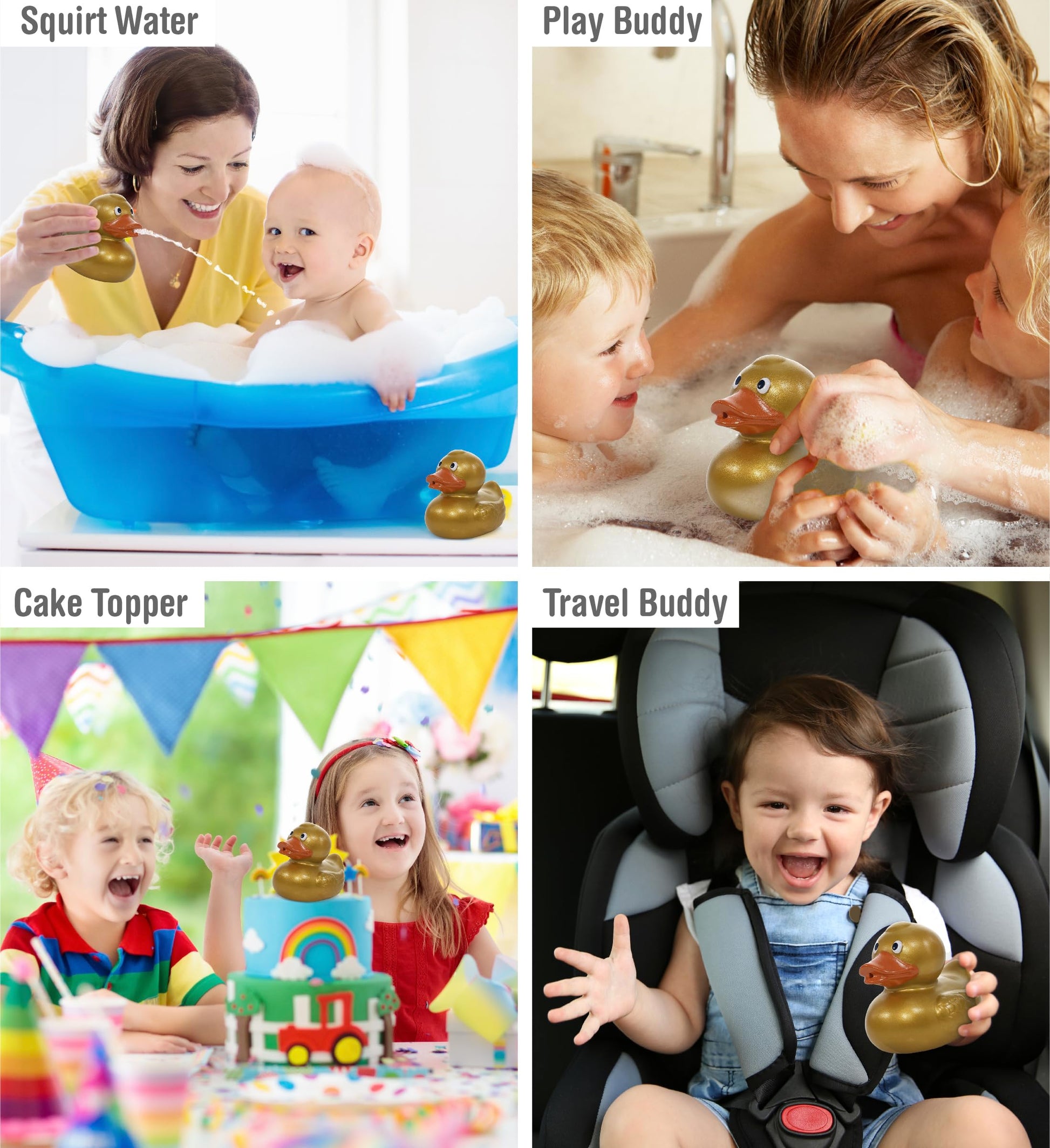 View compareDolliBu Metallic Gold Duck Bath Buddy Squirter - Floating Gold Duck Rubber Bath Toy Fun Water Squirting Bath Time Play for Toddlers Animal Toy for Bathtub Beach and Pool for Girls and Boys