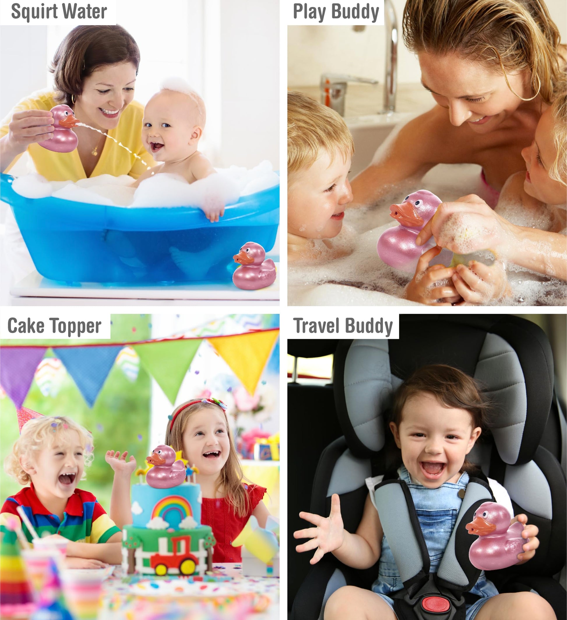 Cute animal bathtub toys or bathing toys are great for educating little children and expanding their knowledge about animals and colors. Perfectly sized baby tub toy that can be played in the bathtub pool or beach for endless fun. It can also be played outdoors during imaginative pretend play. Use as toy decor for an animal-themed room! Duck-shaped baby water floaties also make cute gifts for little kids. Make your kids look forward to bath time! Bath squirters are floating toys for kids who enjoy spending time in the water. A fun toy to play and share with siblings and friends in a tub or pool. Perfect for parents who want to make bath time a fun and educational learning experience for their children. Ideal gift for expecting mothers or a giveaway party favor at a children's party. Entertain your little one with tub animal toys that will make them want to take a bath every single day. DolliBu Rose Gold Duck Squirter Bath Toy is part of our cool pond collection of bath buddies and makes any water activity a joyous one. Ideally suited for the bath pool or beach. Designed with lively color and crafted with a perfect size for little hands to hold and squeeze. Duck Bath Buddy Squirter is a floating bathtub or pool toy made of enhanced-quality rubber materials. The toy is durable lightweight and colored with non-toxic materials which makes it safer and easier for children to play in the shower or while enjoying a swim. Preserve this cute bath squirter toy by hand washing squeezing out all water and letting it completely dry before the next use to prevent any build-up. Includes 1 Metallic Rose Gold Duck Bath Buddy Squirter Toy for kids. The bath toy features smooth soft and rounded edges to ensure the safety of children while enjoying water games. Designed with cartoon eyes and soft rubber beak. The adorable duck shoots out water from a tiny hole when squeezed. Duck baby float squirter toy measures 2.7Lx2.2Wx2.3H inches perfect fit for babies' little hands.
