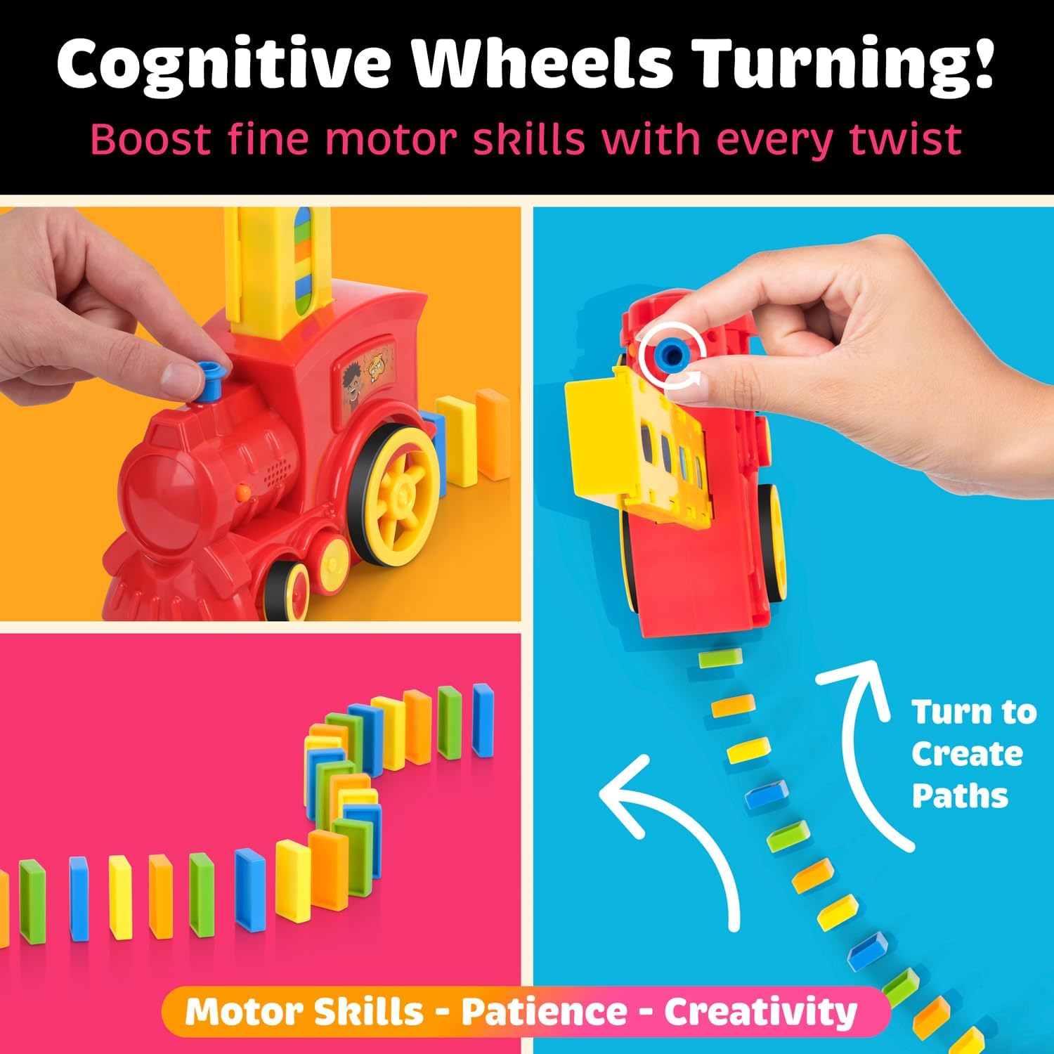 • Q: Can parents and grandparents play with the Domino Train Set? A: Absolutely! The game promotes a great bonding experience between parents, grandparents, and children, while also aiding in skill development.