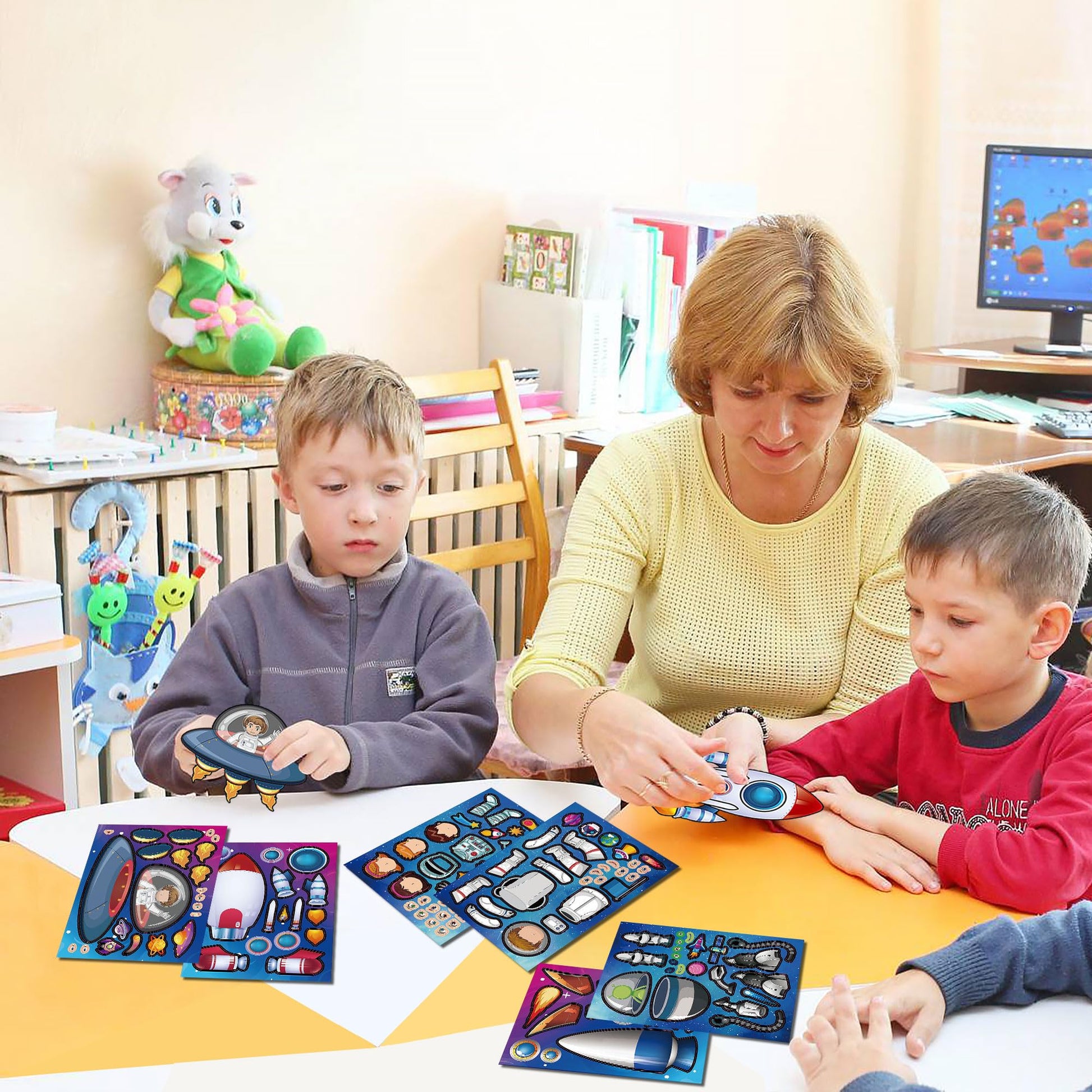 View compareDorgua Space Themed Make-A-Face Sticker, Make A Space Stickers For Kids Boys, Diy Crafts Stickers Face Stickers, Make Your Own S