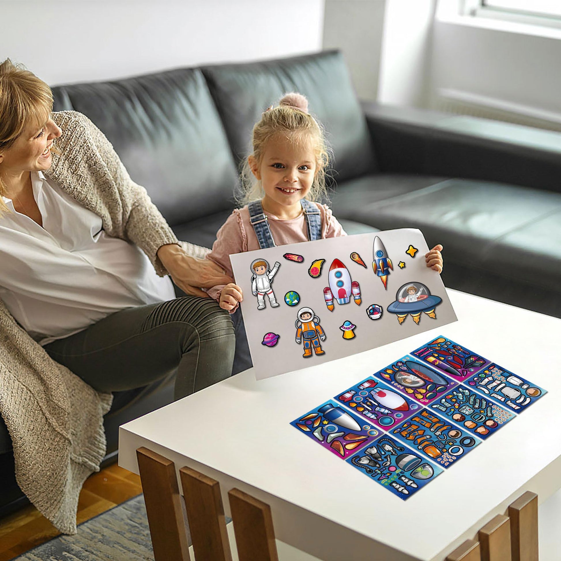 - Q: How many sheets and designs are included in the package? A: Each package includes 24 sheets of stickers featuring 8 different space-themed designs, with 3 sheets of each design, providing a variety of options for kids to mix and match.