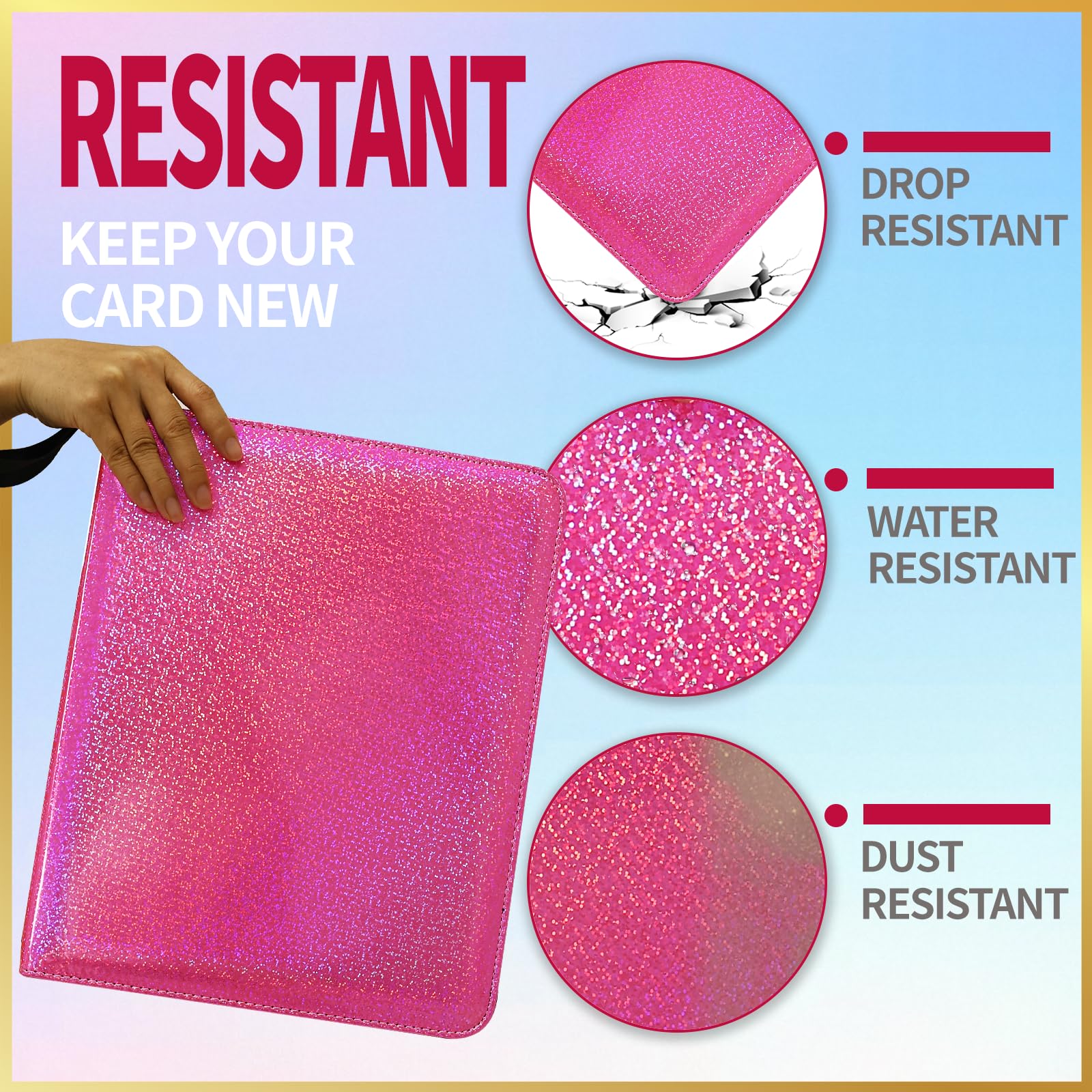 Dosanlues 9 Pocket Card Binder - 1080 Double Sided Pocket PU enhanced Zip Trading Card Binder Collectible Card Albums for MTG TCG Sports Cards Game Cards - Bling Pink