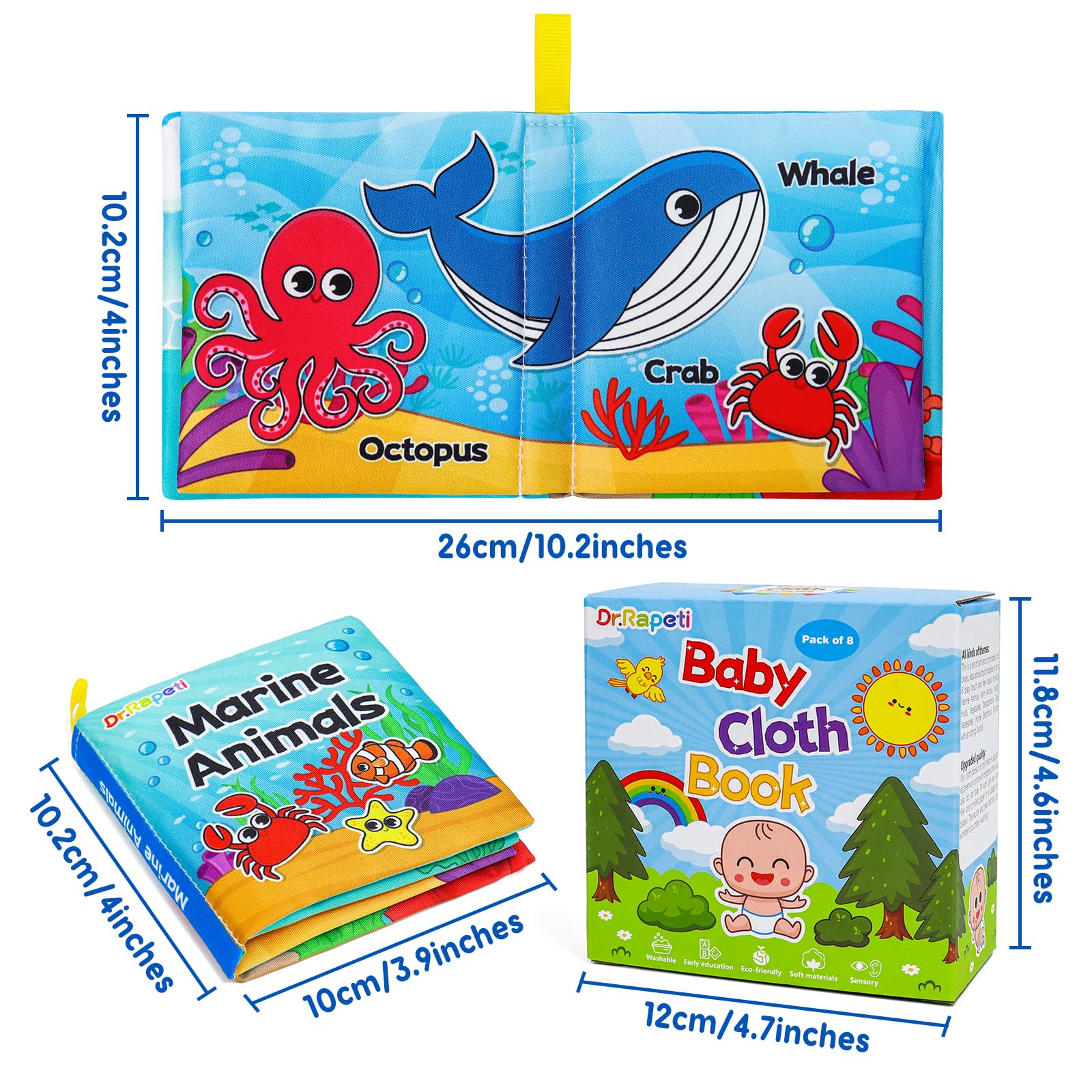 Dr.Rapeti Soft Cloth Books Baby Books Bath Books 8-Pack For Baby Infant Toddler Kid Crinkle Washable Chewable Early Educational Preschool Learning Giftable