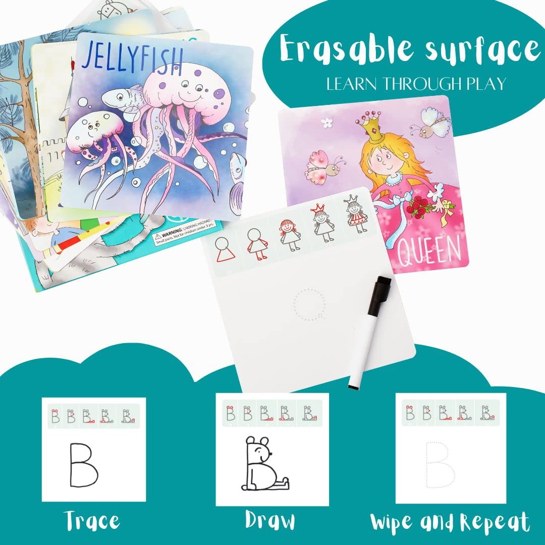 - Q: How can this product support early learning for children? A: This product supports early learning by providing highly repeatable activities that help children learn letter recognition, formation, and sounds, while also encouraging creative problem solving and concentration through engaging drawing tasks.