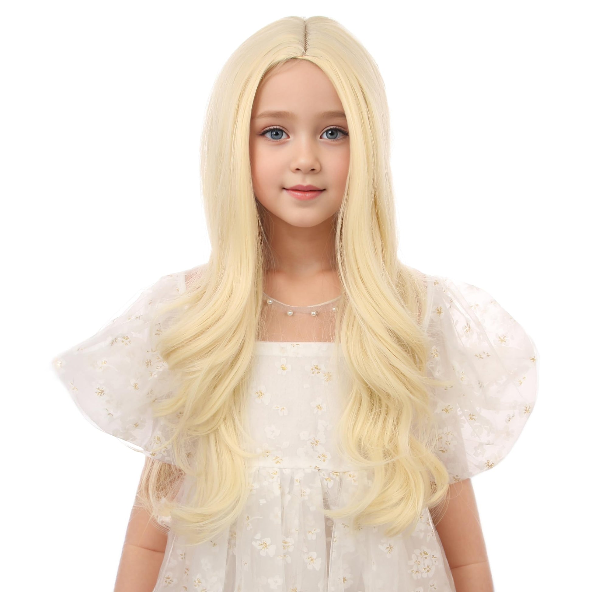Duduwig Long Light Blonde Wigs For Girls Kids Long Wavy Curly Wig Light Blonde Middle Part Wigs For Child Synthetic Wig With Hai
