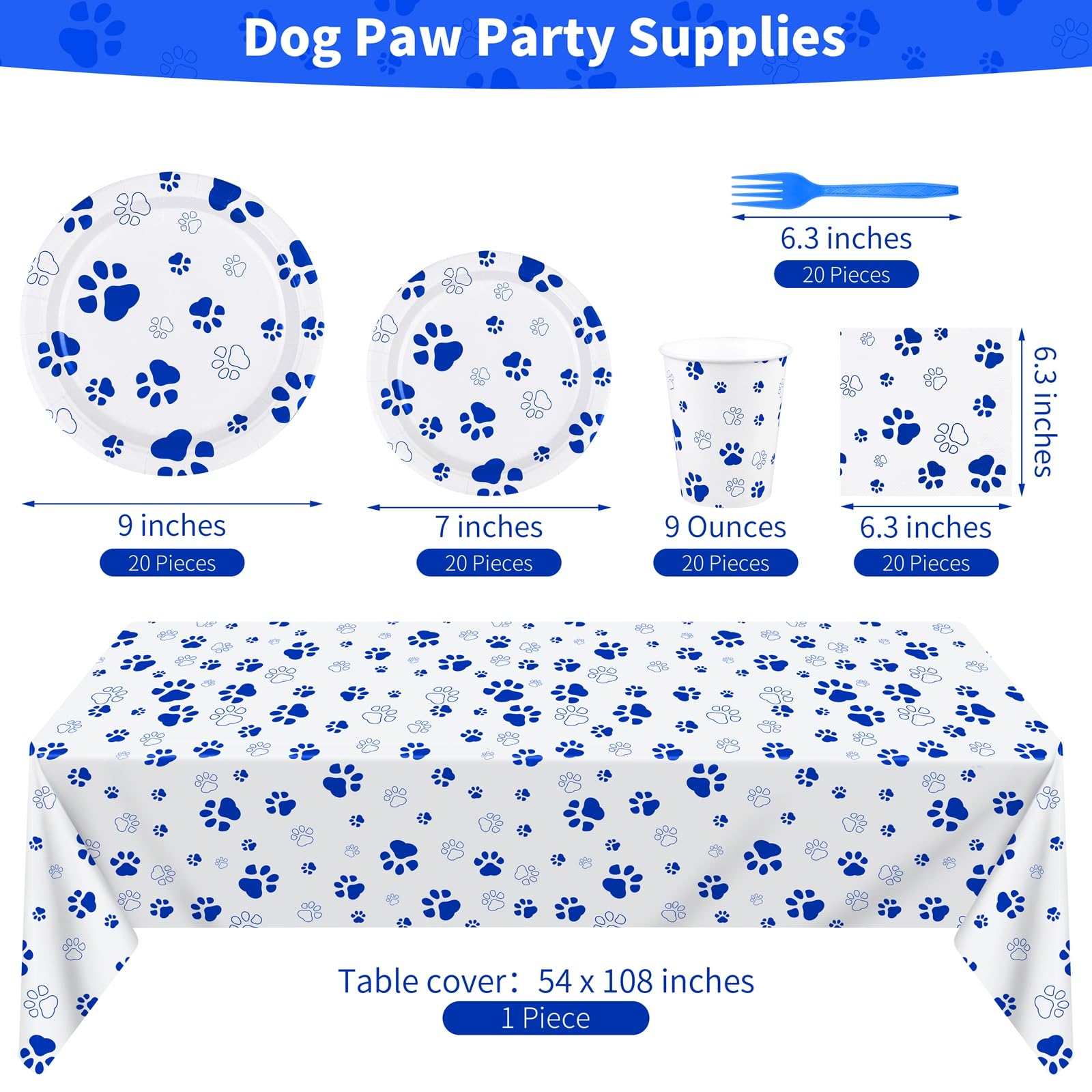 - Q: What is included in the durony 121 Pieces Blue Paw Print Party Supplies set? A: The set includes 40 plates, 40 napkins, 20 forks, 20 paper cups, and 1 plastic tablecloth, totaling 121 pieces, perfect for your puppy theme party.