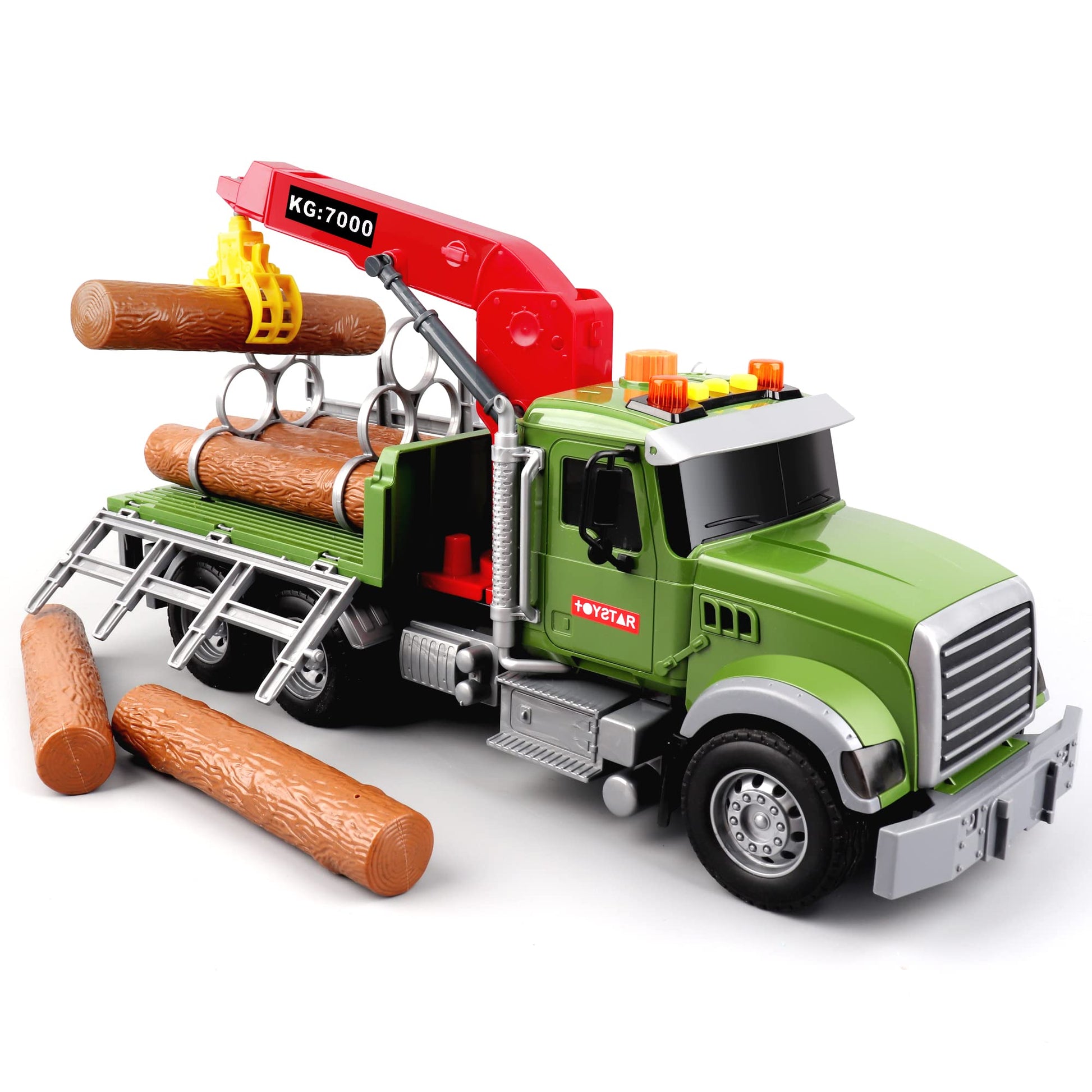 Dwi Dowellin Kids Toys for 3 4 5 6 7 Years Old Boys,15'' Large Timber Truck with Loading Crane and 6 Trunks,Birthday Gifts for B