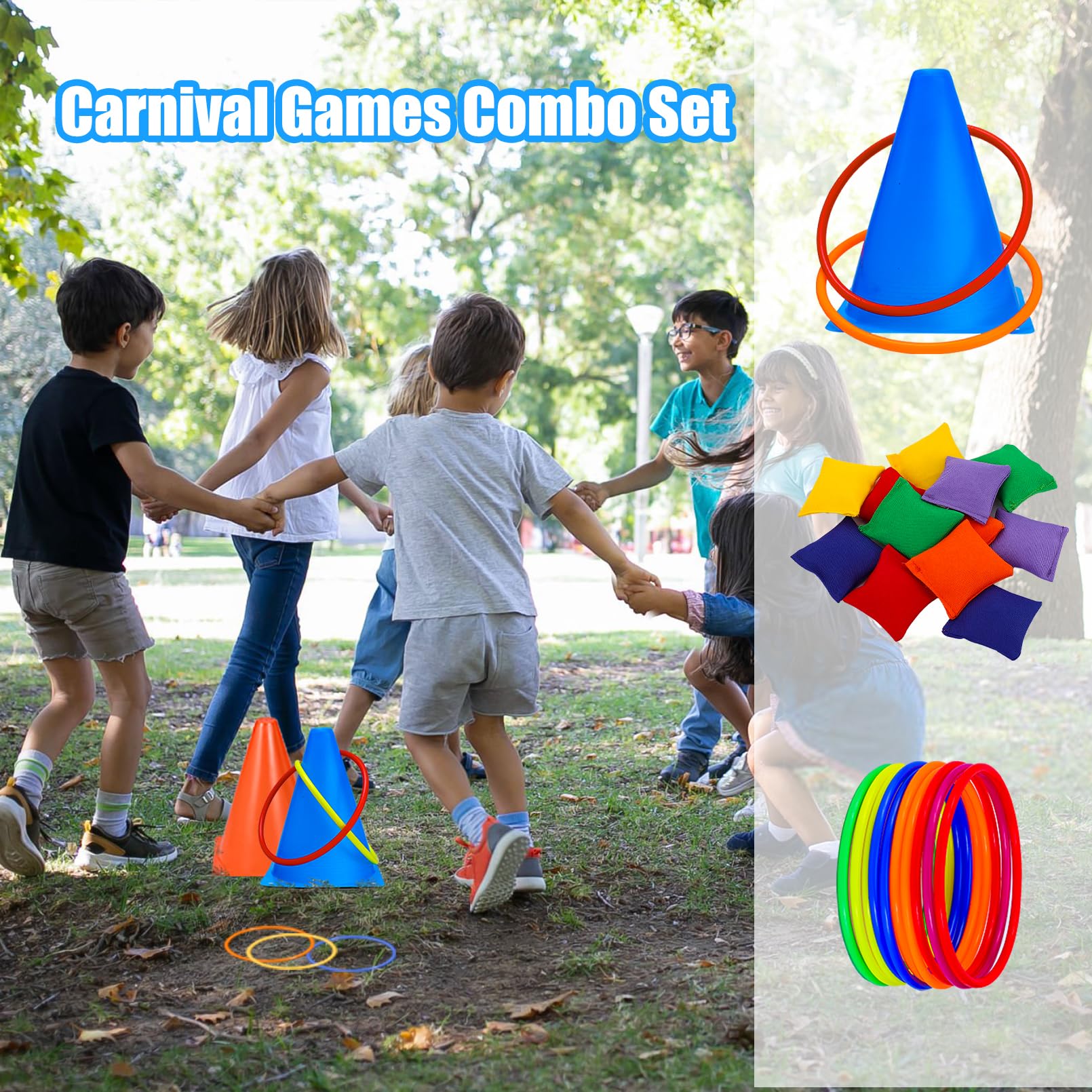 Dyrfolm 48 Pcs Carnival Games Combo Set,Plastic Cones Ring Bean Bag Toss Games Combo Set,Carnival Outdoor Games For Kids Adults