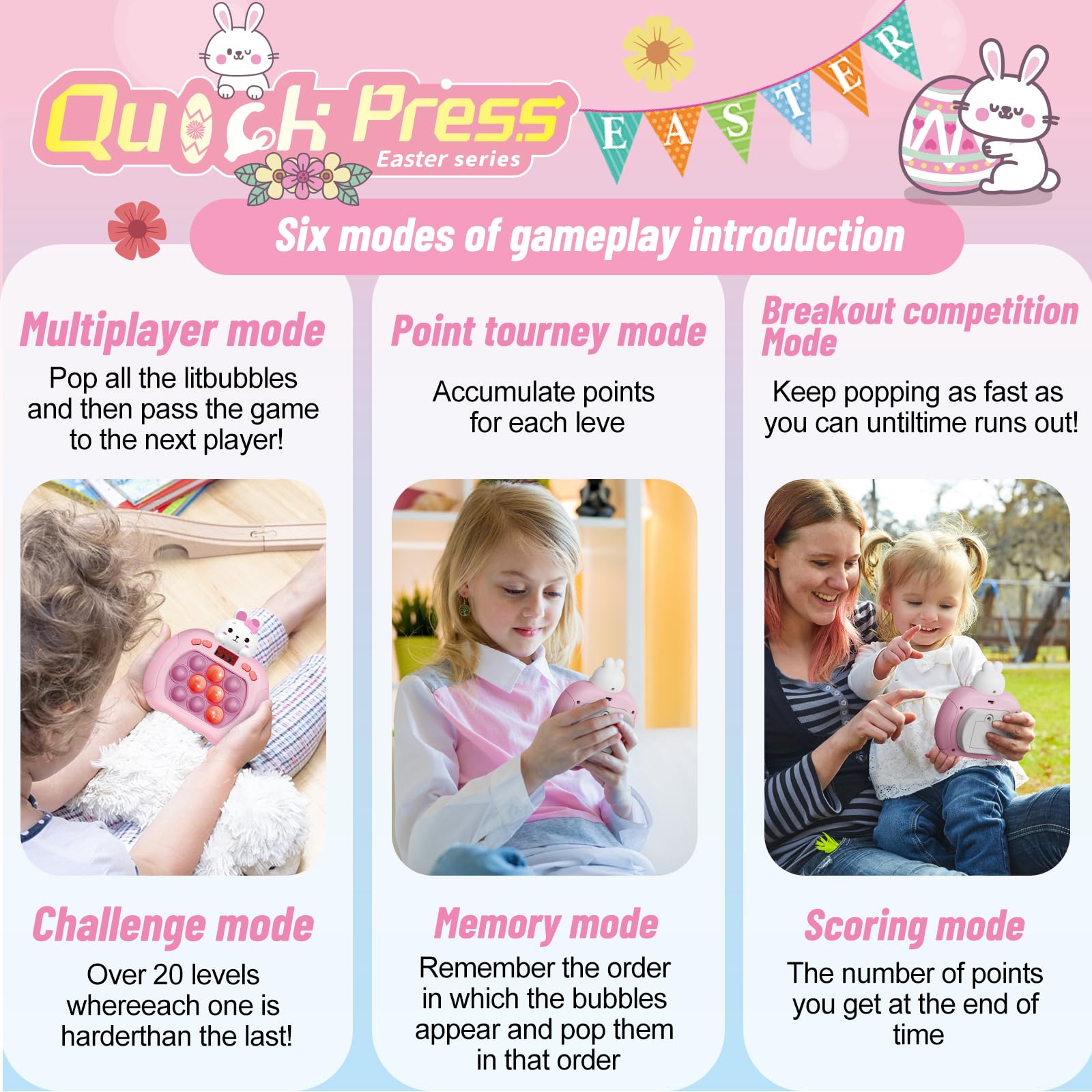 Pop Quick Push Game Easter Toy, Easter Basket Stuffers Fast Push Game Fidget Toys For Kids, Handheld Puzzle Game Sensory Toys, Light Up Pop Game Gifts For 3-12 Year Old Boys Girls (Cute Bunny)