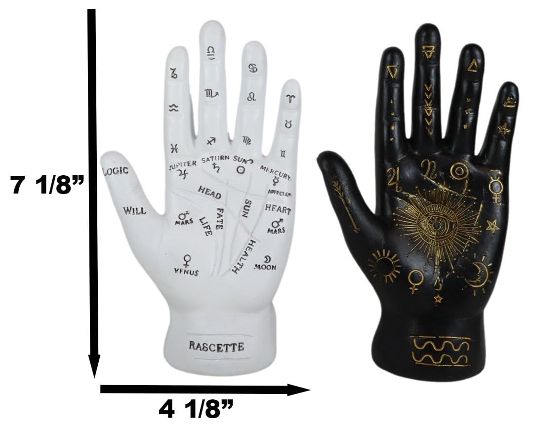Ebros Gift Ancient Mystical Psychic Fortune Teller Chirology Palmistry Hand Palm With Lines And Symbols Figurine Decor Witchcraft Spiritual Divinity Statue For Palmists Readers (Black And White Set)