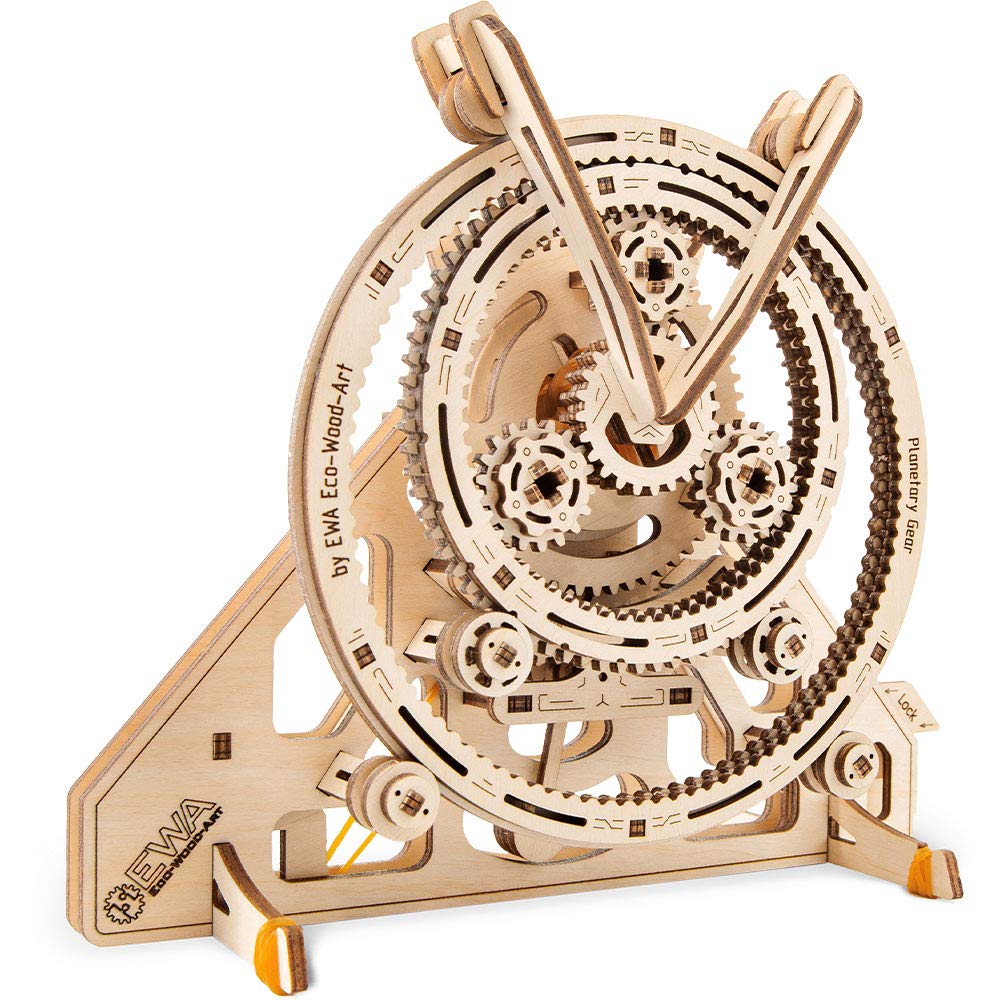 Mechanical educational kit to assemble. Also known as epicyclic gear train, this tabletop model demonstrates the essence of planetary gears, used as speed reducers, slowing down motors and increasing torque. This mechanism can be found in mechanical pencil sharpeners. Its a perfect STEAM project to teach students how gears work.