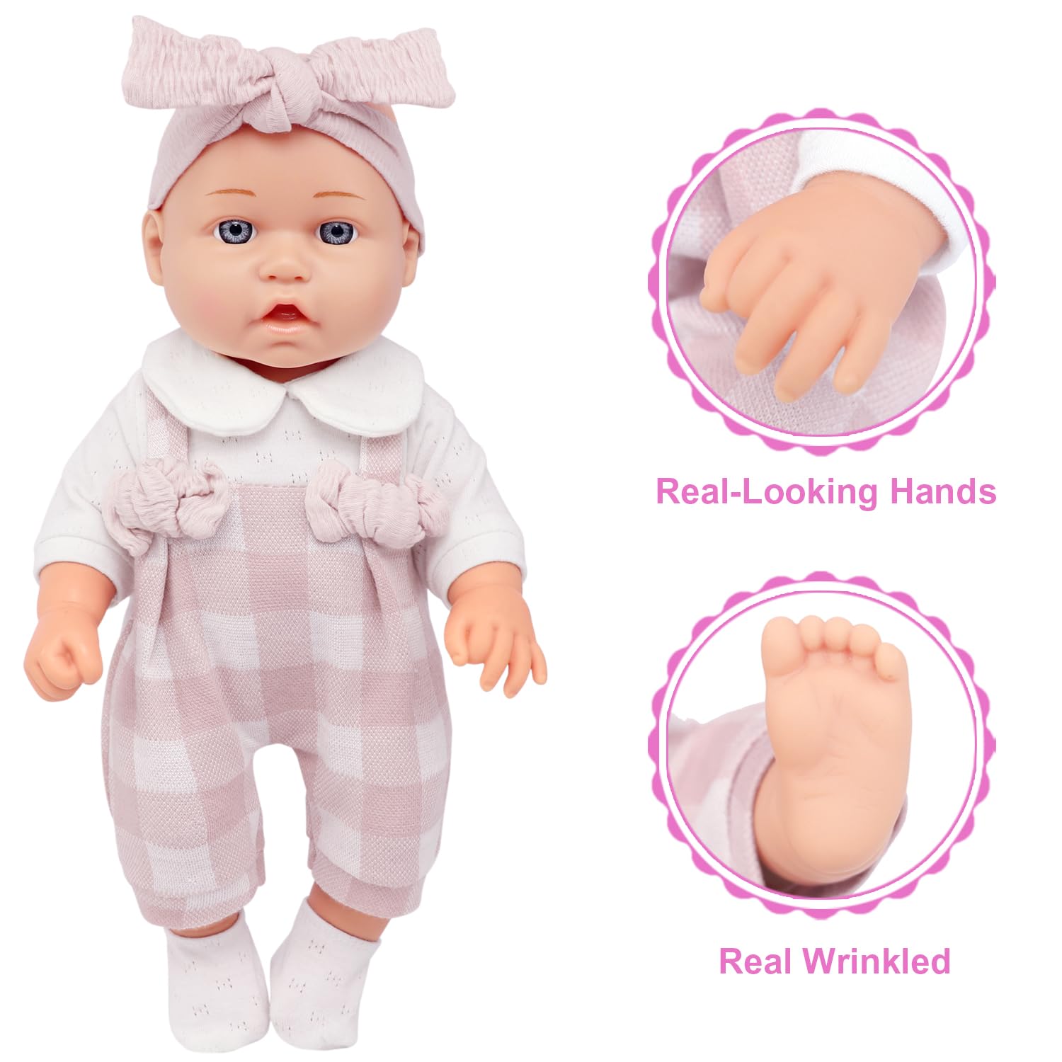 View compareEcore Fun 12 Inch Baby Doll and Clothes Accessories Playset - 6 Pcs 12 Doll with Pink Romper Outfit Headband Socks Pacifier Bottle | Gift Ready in Box