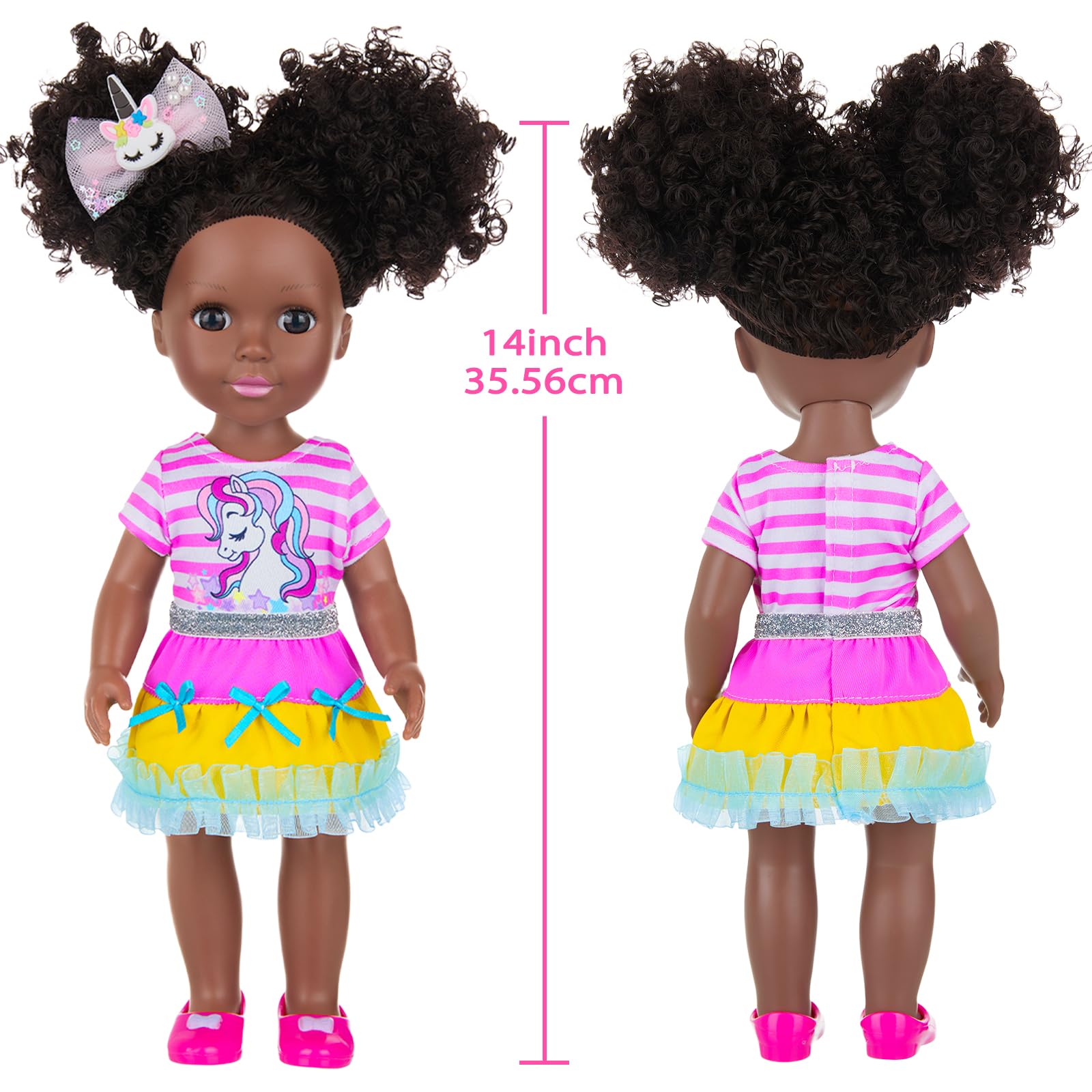 View compareEcore Fun 14 Inch Black Doll with Black Baby Doll Clothes Accessories - Including Dress Top Skirt Shoes Comb Mirror Hairclip Phone & Stickers - African Realistic Silicone Girl Dolls for Girls