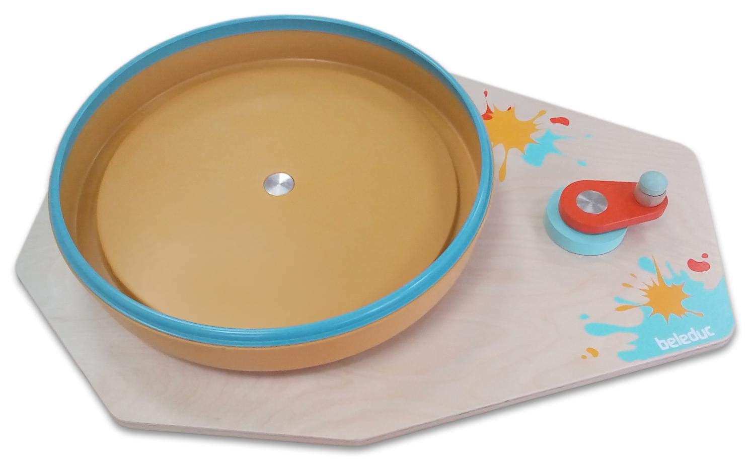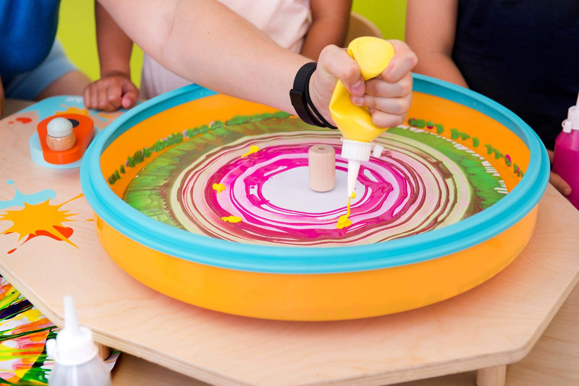 The colour centrifuge gives children a simple way of conjuring up expressive, dynamic works of art, by turning the handle quickly or slowly, they can influence the development of the picture | Paint is simply applied to the paper before or during the spinning process, and the centrifugal force creates super patterns.