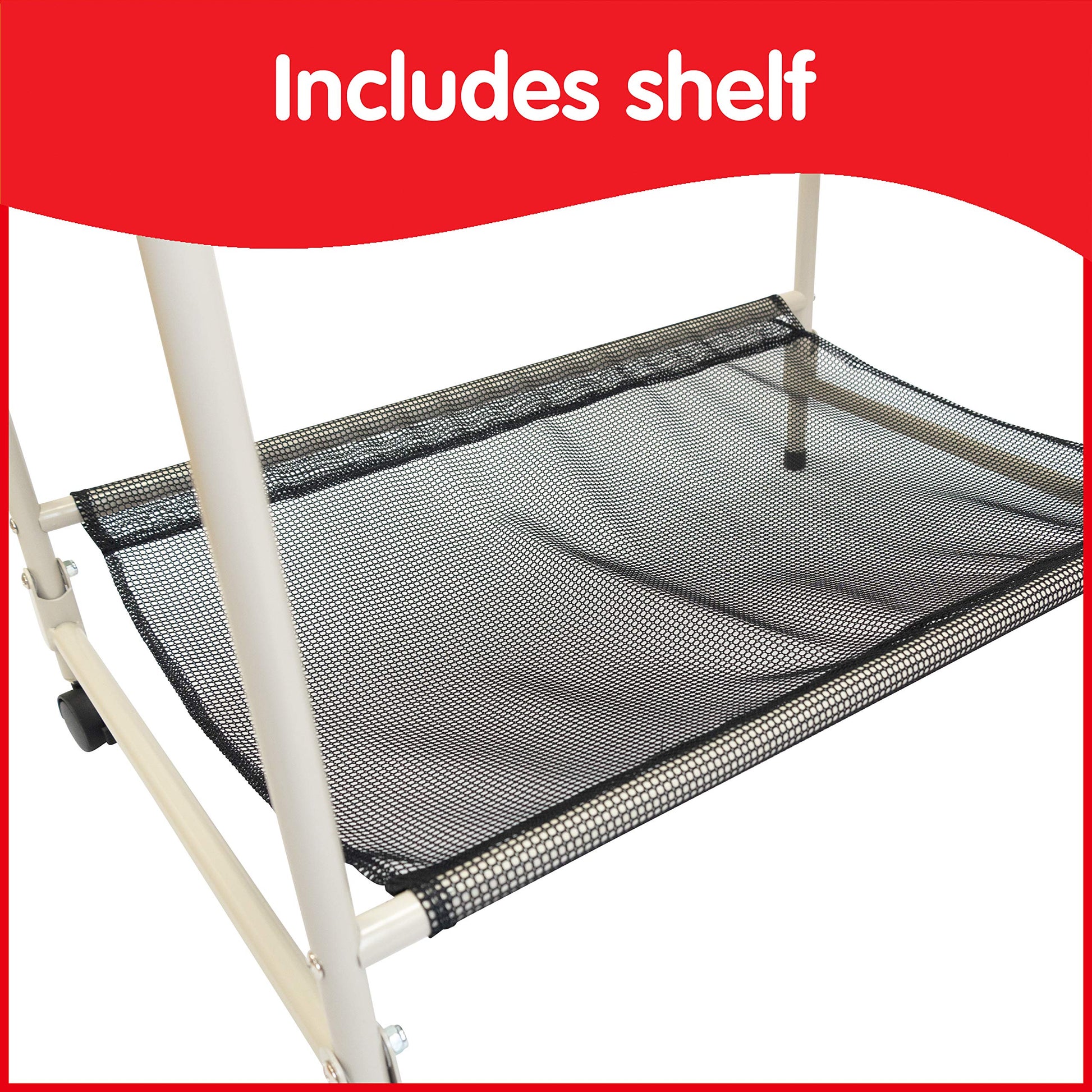 This Desk Top Water Tray and Stand promotes sensory and interactive play. Sand and water play fosters an understanding of STEM concepts including weight, buoyancy and water displacement. Sand and water play also develops fine and gross motor skills. Kids scoop, build and pour as they play, which also improves hand-eye coordination. Play anywhere! The powder-coated, tubular steel frame folds for easy travel and storage. The tray is injection molded, which means the plastic which comprises it is uniformly thick and will easily withstand water or sand without bending. Use the mesh shelf for extra storage for toys or activities! Size of tray: 27.6 L x 19.7 W x 5.9 D. Size of stand: 27.6 L x 18.9 W x 22.8 H. Toys are not included.
