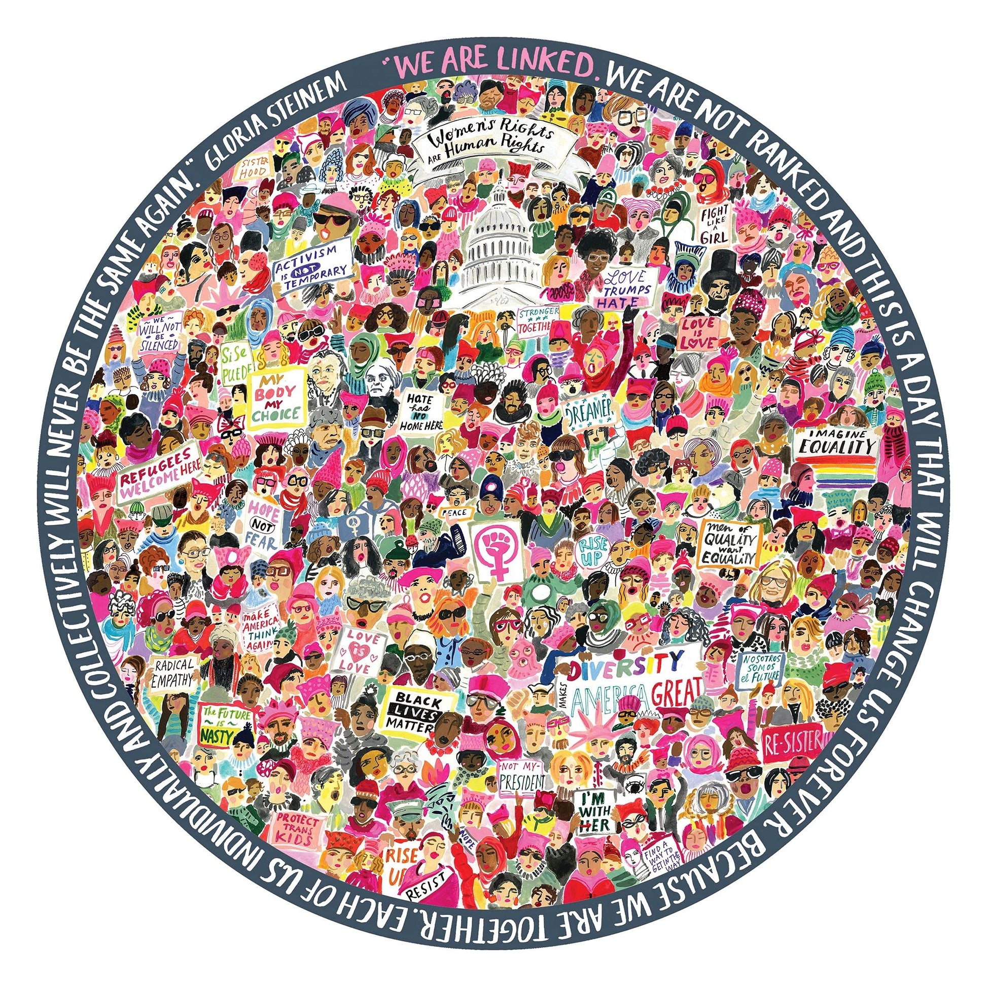 Eeboo: Piece And Love Women March! 500 Piece Round Circle Jigsaw Puzzle, Puzzle For Adults And Families, Glossy, Sturdy Pieces And Minimal Puzzle Dust