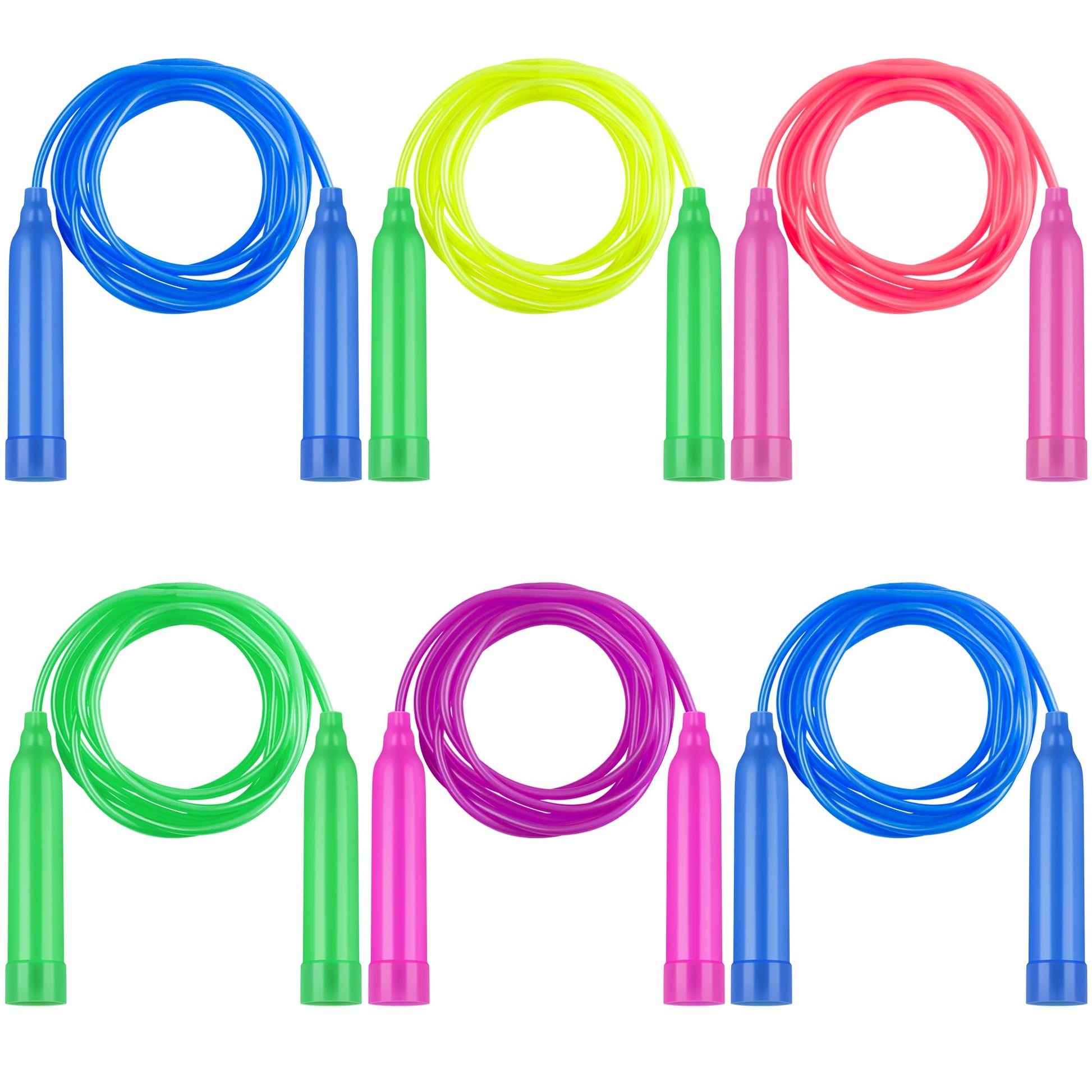 Elcoho 6 Pack Colorful Kids Jump Rope Set Adjustable Plastic Kids Jump Rope Great Party Favor Skipping Rope Outdoor Jump Ropes Great Party Favor