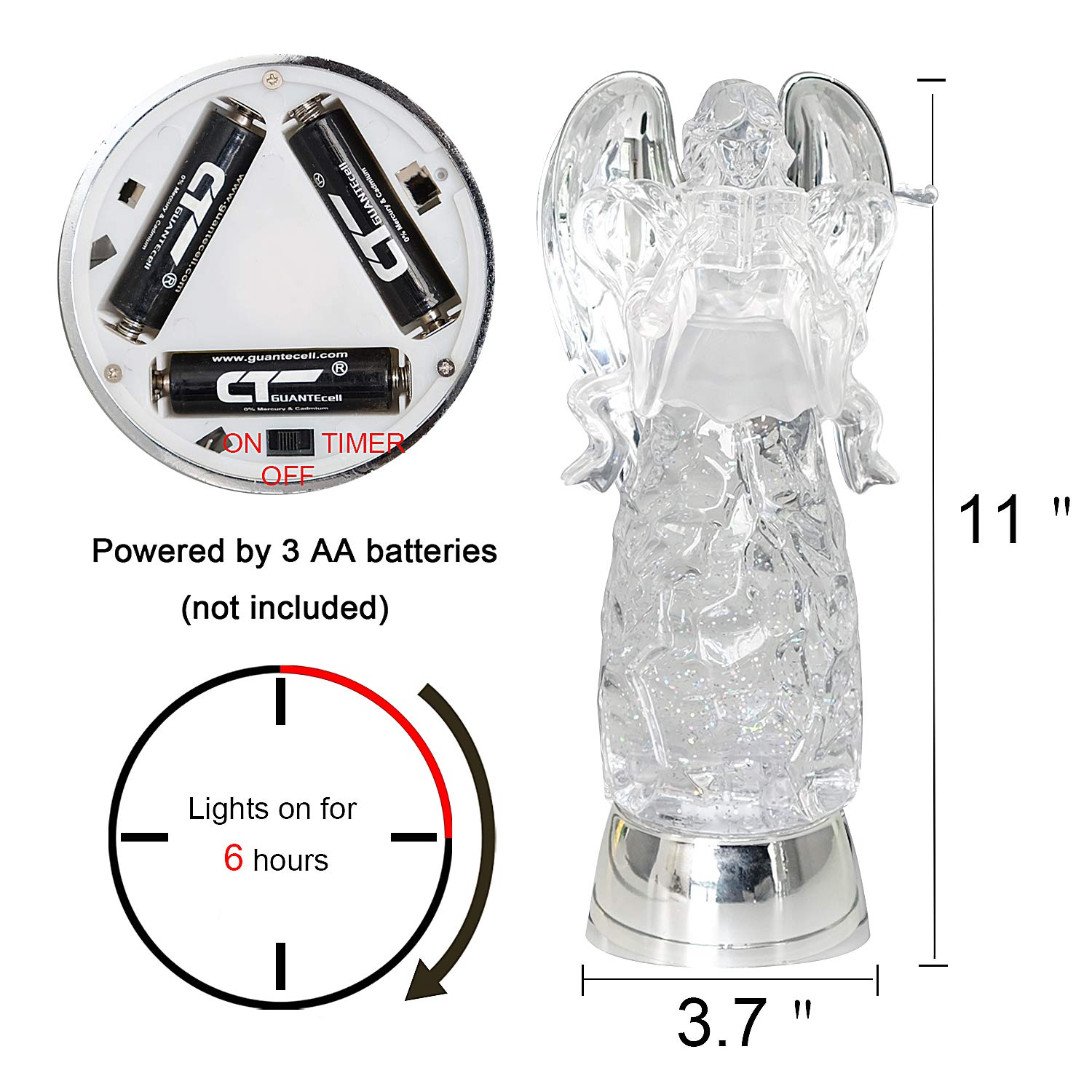 Eldnacele Clear Acrylic Color Changing Angel Figurine Water Glittering Angel Light with Timer-Bible